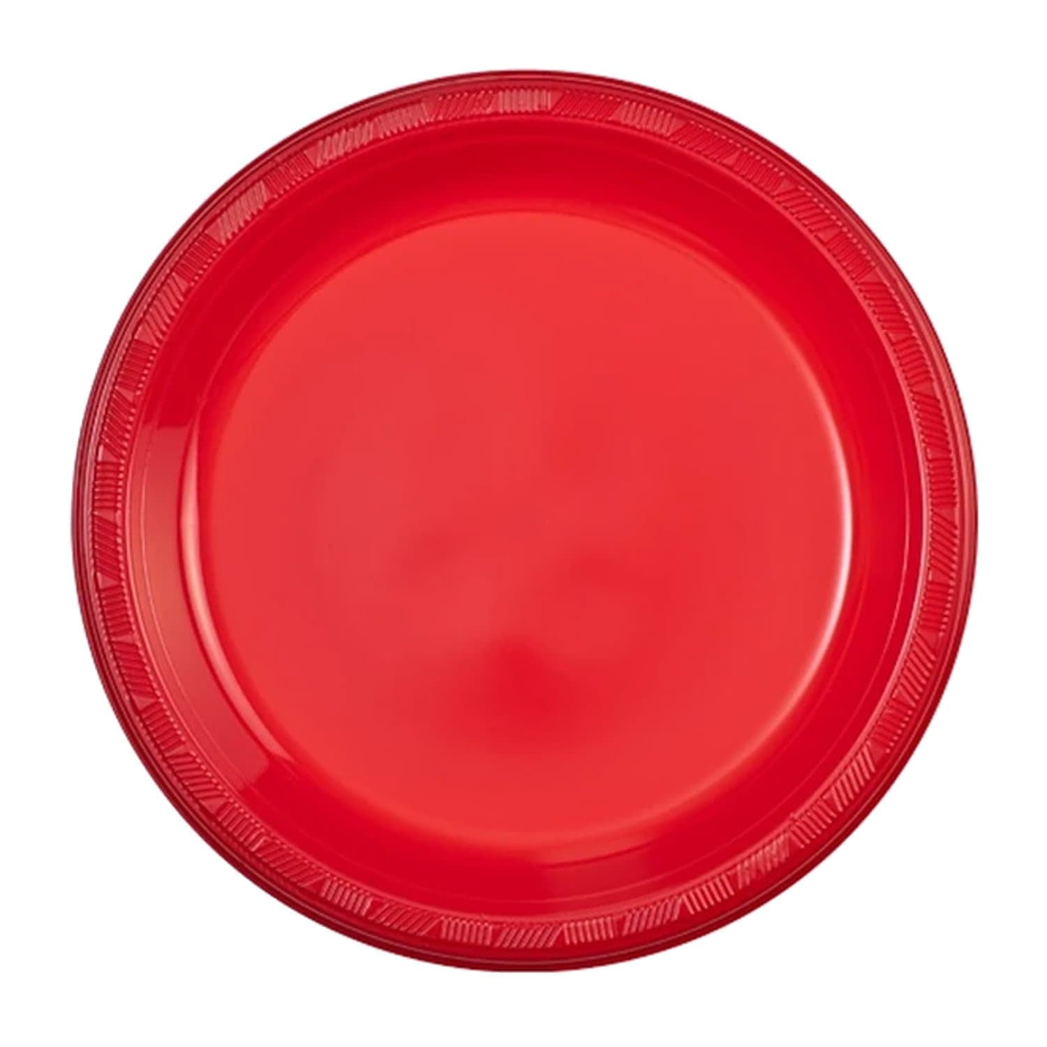 Disposable Reusable Plastic Dinner Plates Heavy Duty 10′ Solid Color Set of 10 (Red)