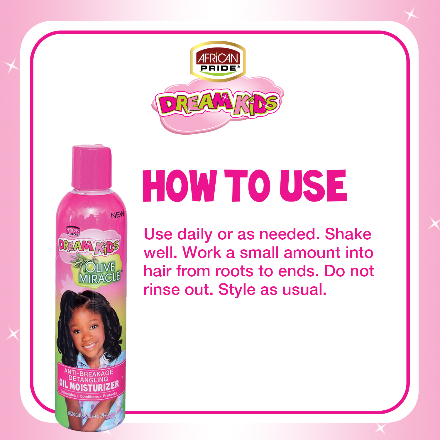 African Pride Dream Kids Olive Miracle Detangler 8Oz . This Product is Easy to use. African Pride Dream Kids Olive Miracle Detangler 8Oz .