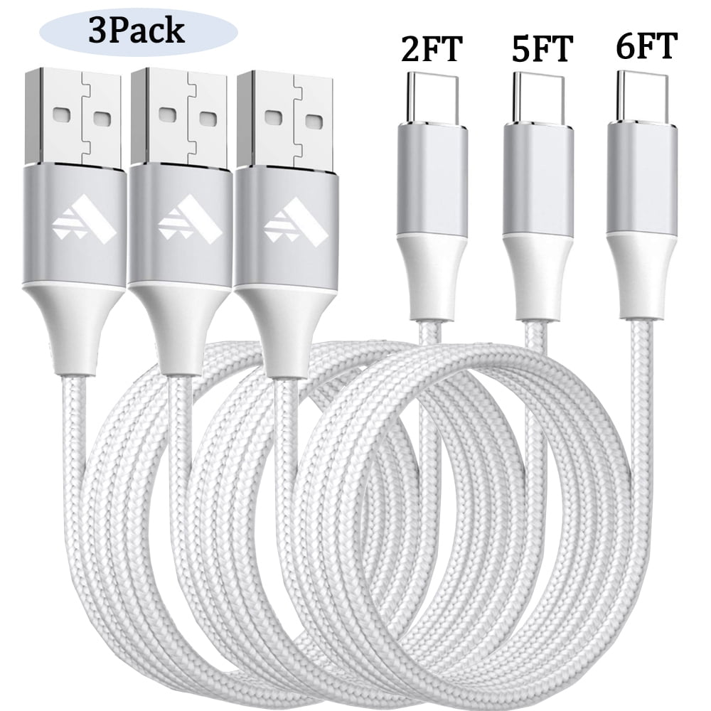 Aioneus USB Type C Cable [3Pack 2ft+5ft+6ft] Premium Braided Fast Rapid Charging USB 3.0 Data Sync & Charge Cord for Samsung Galaxy S10/S9/S8 Plus Note9/8,LG G5 G6,Google Pixel(White)