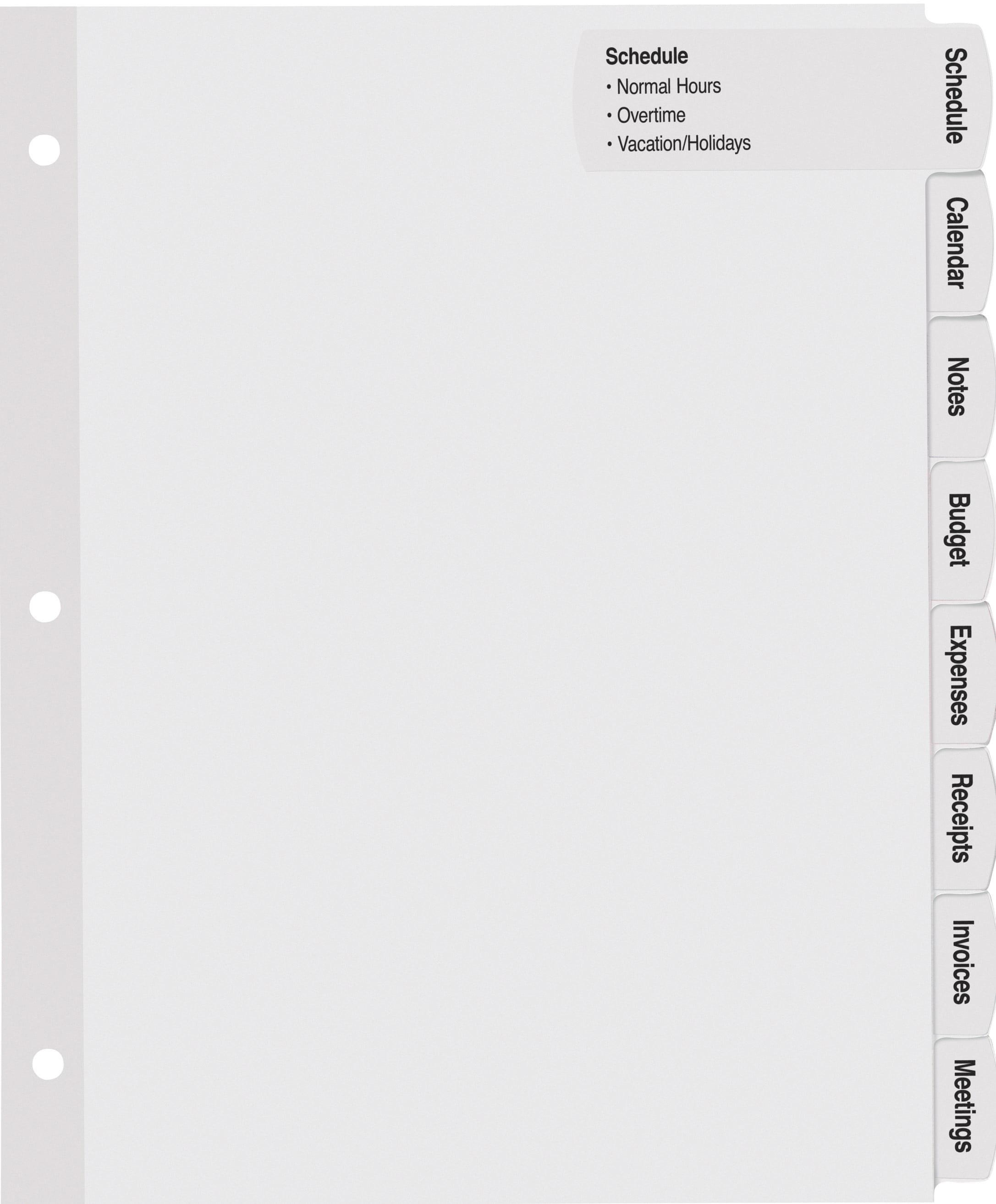 - Standard tab labels are also included for short descriptions, labeling the backs of dividers and quick referencing