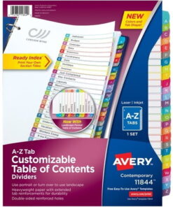 Created for big projects, Avery Ready Index Double Column Dividers are just what you need to organize your most complicated events. Each tab is preprinted and uniquely color coded for a professional appearance. Print your own custom section titles and images onto the table of contents sheet without worrying about labels or inserts. Whether you’re creating planners for classes or hosting a presentation, these dividers are ideal for getting everything sorted. 24 dividers are included with each sheet measuring 8-1/2"x11". The first column of tabs is " long with the second column of tabs measuring " to create a layered layout that is easier to read. The 3 binder holes are reinforced on both sides of the heavyweight sheet to prevent creasing and tearing. Each divider tab includes additional reinforcement along the edge of each page to distribute stress and resist folding. The printable table of contents is dual compatible with both laser and inkjet printers. Try out free templates for these dividers and check out the Avery Design & Print software at avery.com/templates. More from the Manufacturer