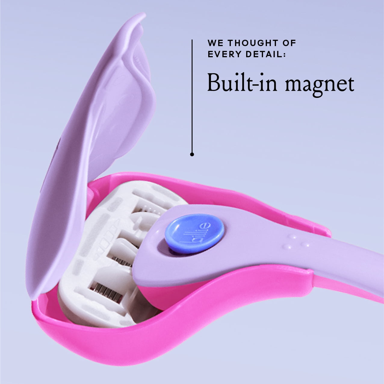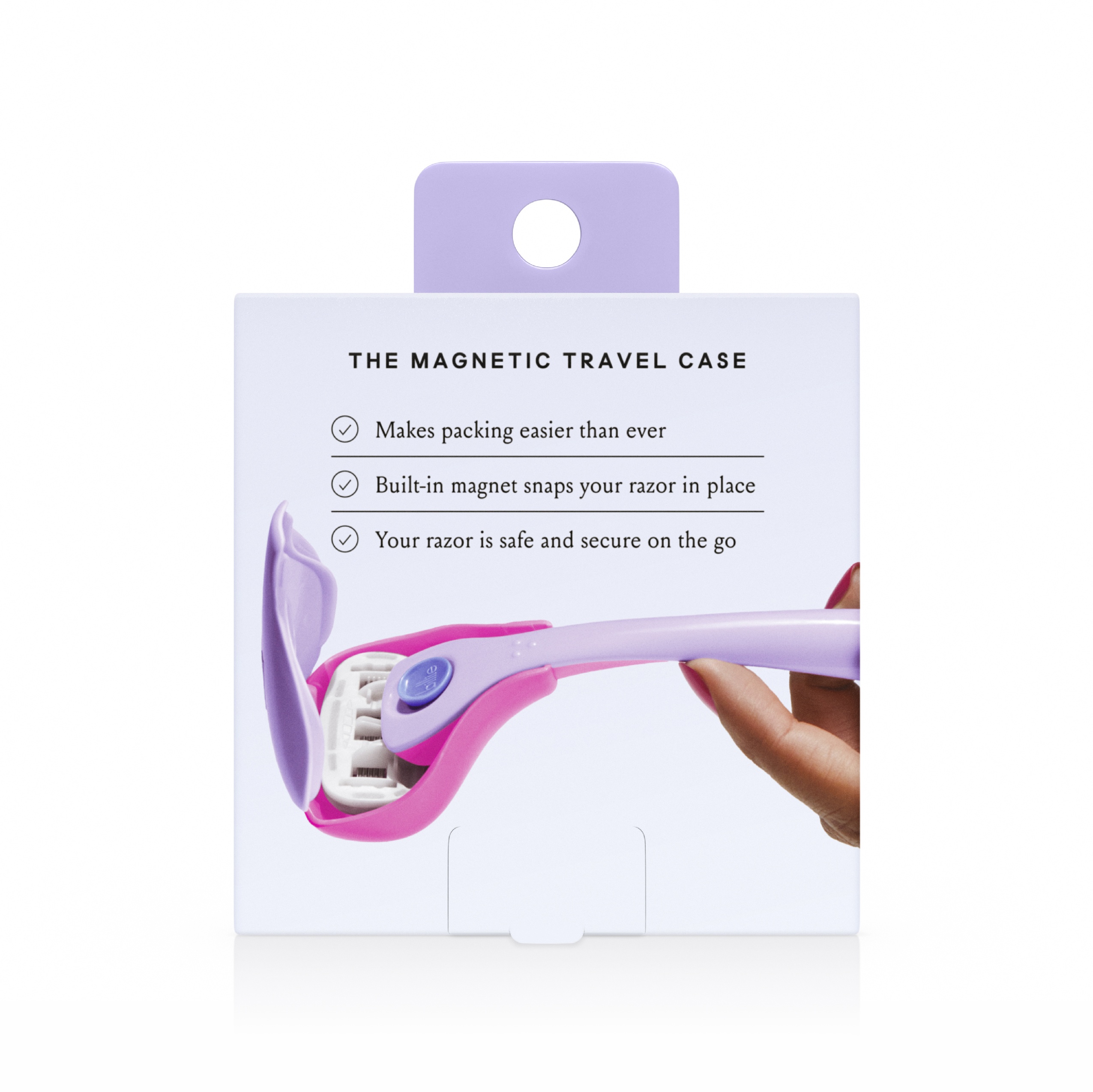Our matching Travel Case makes packing your Billie Razor stress-free and easy-breezy. We thought of every detail – it has a built-in magnet so your razor floats inside the case to keep it in tip top shape. The solid top snaps shut tightly to keep dirt, dust and makeup away from your blade. Plus, it’s designed with little air holes for ventilation so your razor stays dry between uses. Time to pack your bags and your Billie Razor!