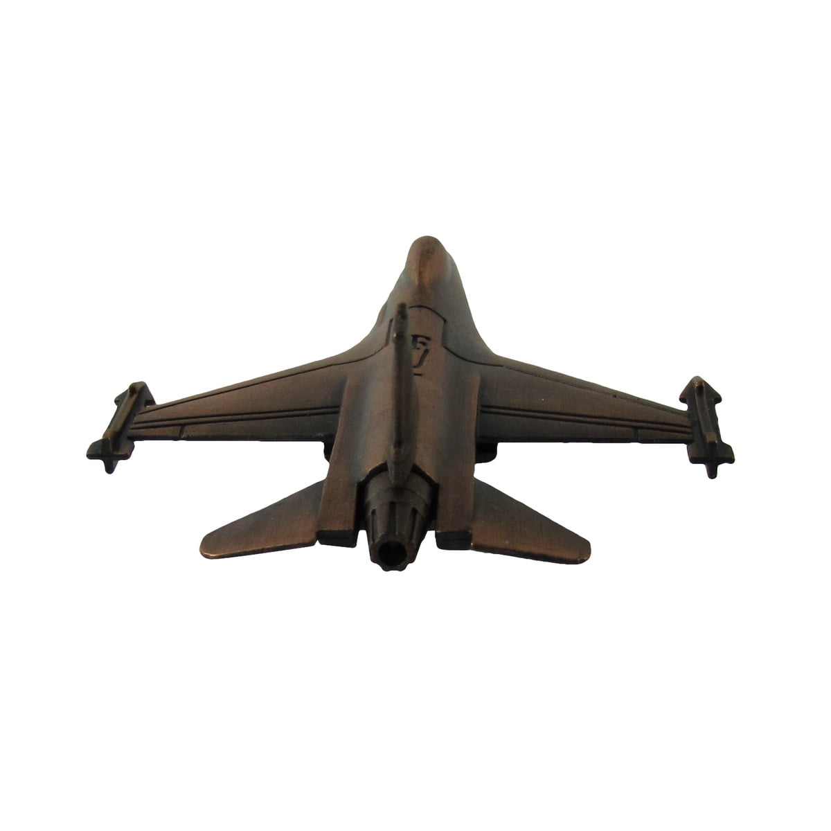 Harness the power of the F-16 fighter jet on your desk with this diecast pencil sharpener. Once ahead of its time, the F-16 was the first fighter aircraft purpose-built to pull 9-g maneuvers and can reach a maximum speed of over Mach 2. This miniature replica of the F-16 features moving wheels, accurate detailing, and a bronze finish. If you’re looking to add some aviation or USAF inspiration to your office desk, this model fighter jet is the perfect decor. Pencil sharpener is housed underneath the wings as part of the landing gear. A great gift for any airman, Navy sailor, military veteran, or aircraft enthusiast, this die cast miniature plane is sure to bring a smile to its recipient’s face. F-16 pencil sharpener measures approximately 4 1/8" long, 3" wide, 1" tall and ships brand new in manufacturer’s packaging with our 100% customer satisfaction guarantee.