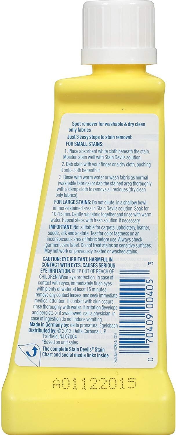 1.7 OZ, Stain Devils #2, Ketchup, Mustard and Chocolate, No 2 Stains Are The Same, Stain Devils Are Safe and Effective On Washable and Water Safe Fabrics Excluding Silk Acetate, Carpeting Or Upholstery, Works Best On Ketchup, Barbeque Sauce, Chocolate, Gravy, Mustard, Mayonnaise, Pizza, Salsa, Soy Sauce, Spices, Steak Sauce, and Tomato Sauce.