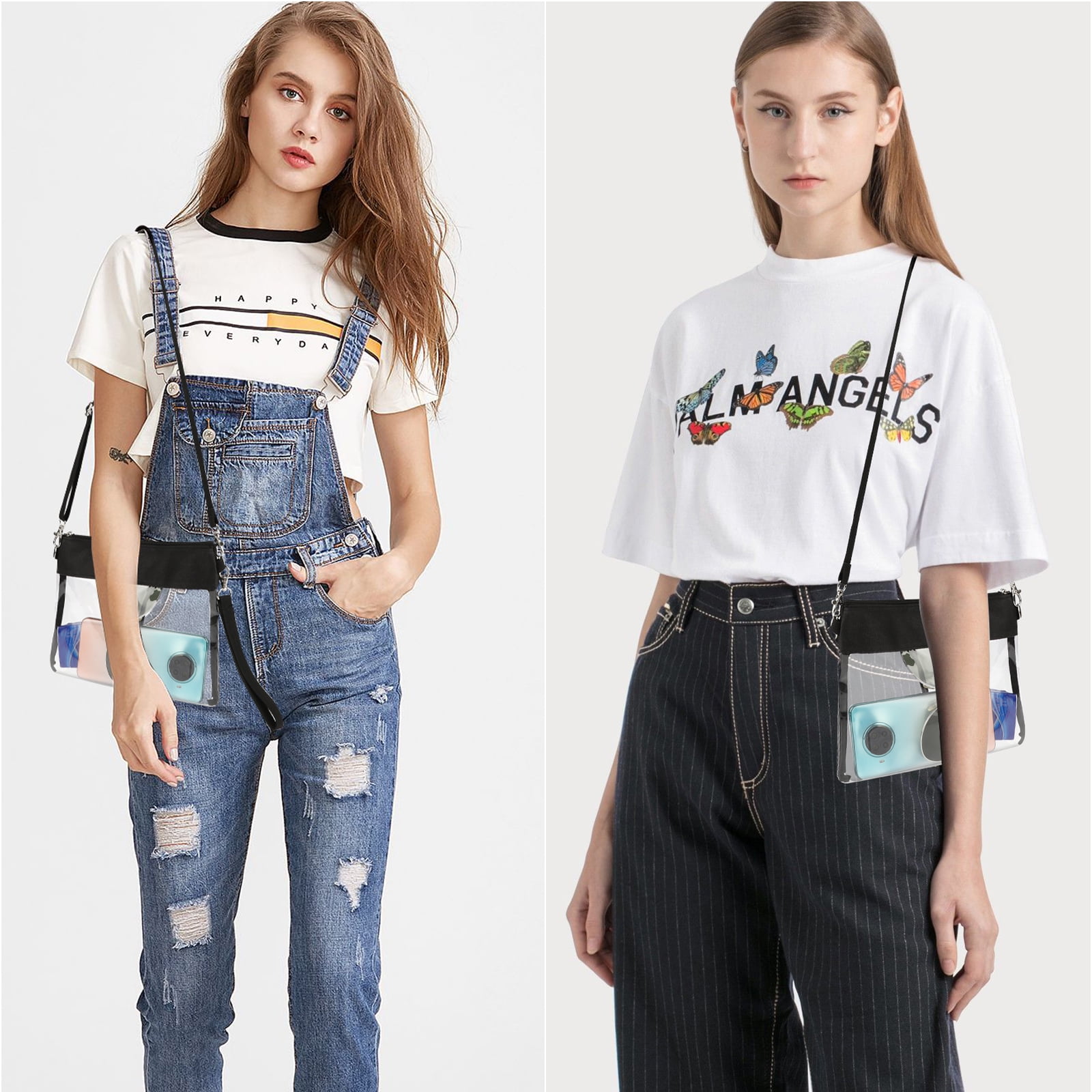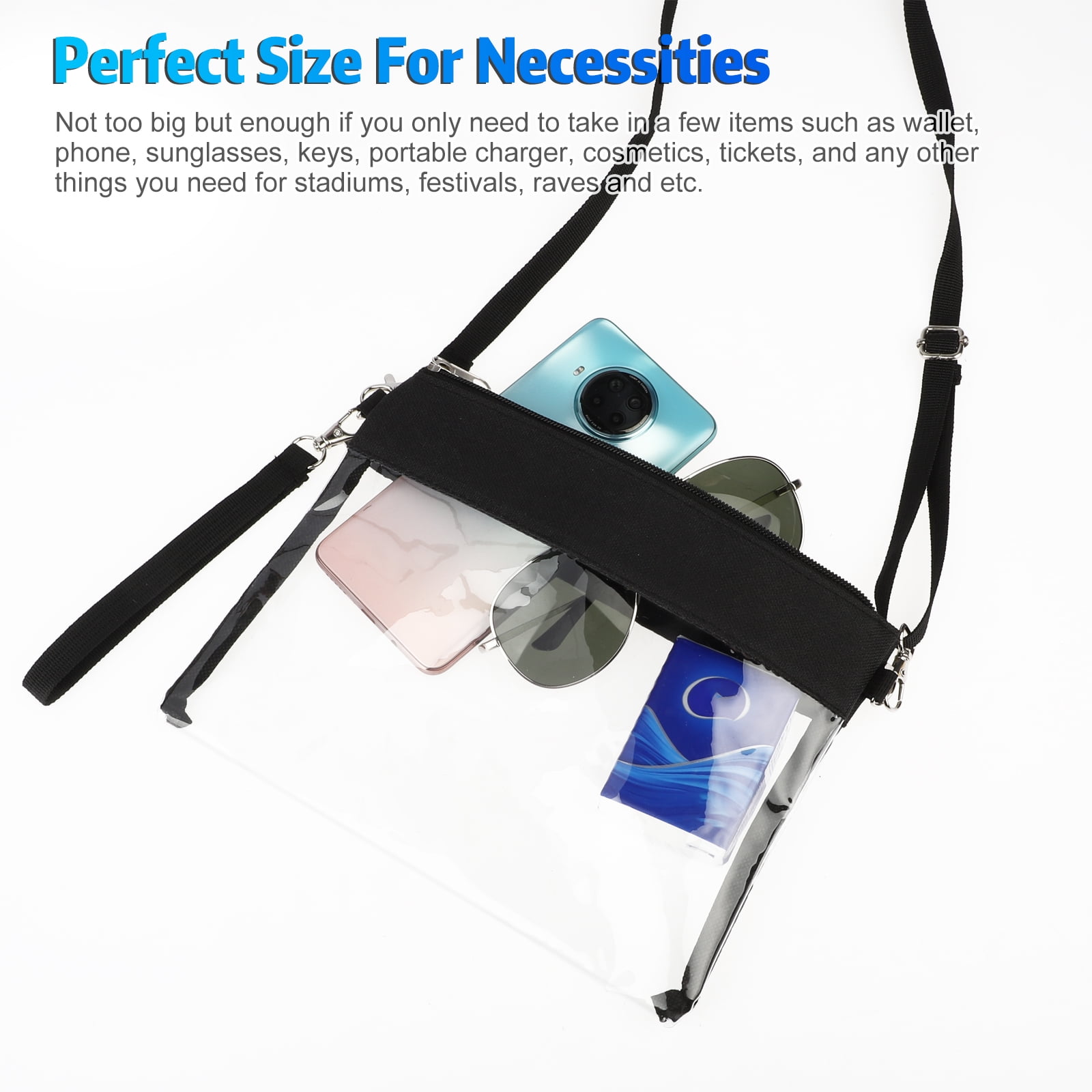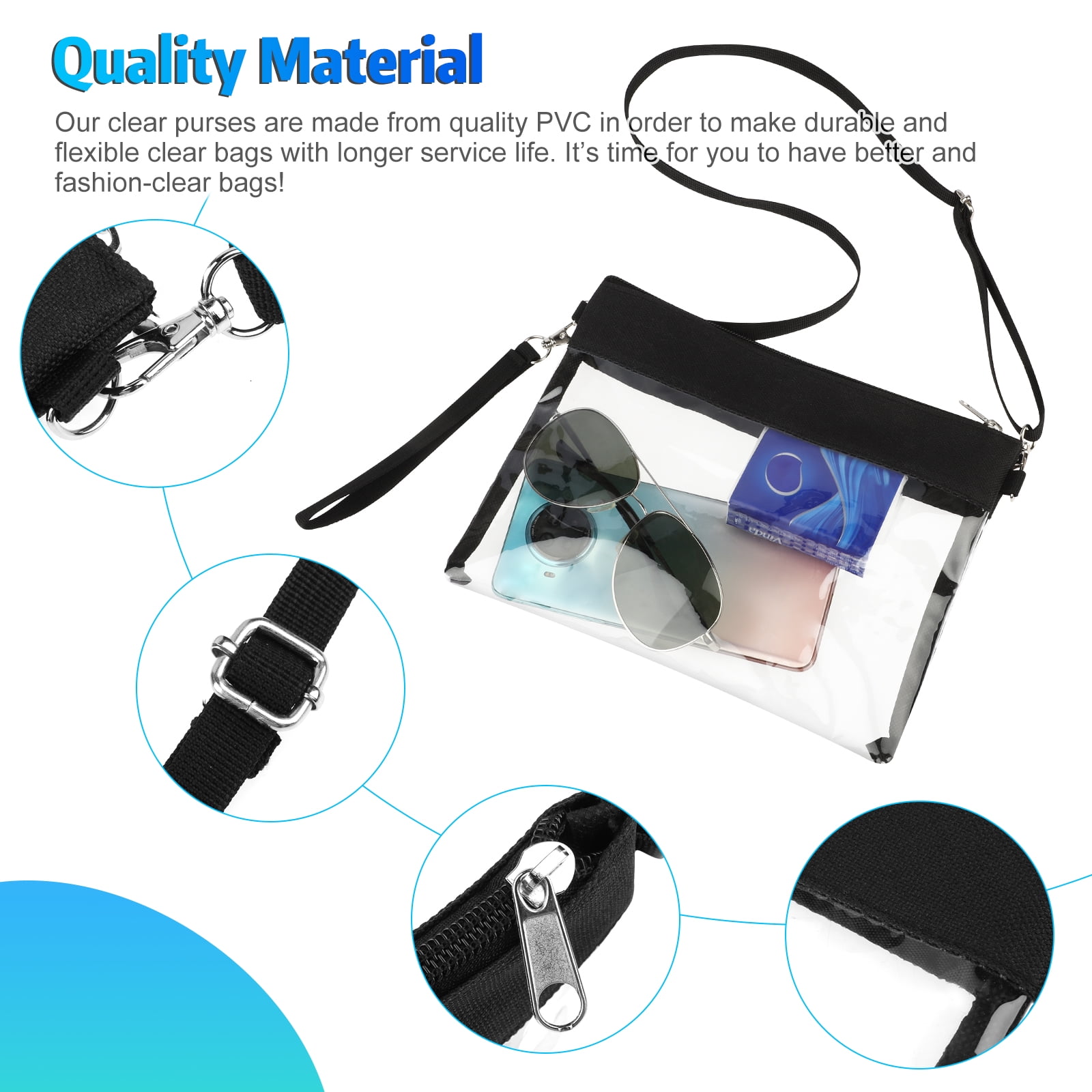 Clear Crossbody Bag, TSV Clear Crossbody Purse, Stadium Approved PU Leather Clear Concert Bag, Clear Purse Clear Bags for Women, Adjustable Clear Purse for Concerts Festival Sports (Black)