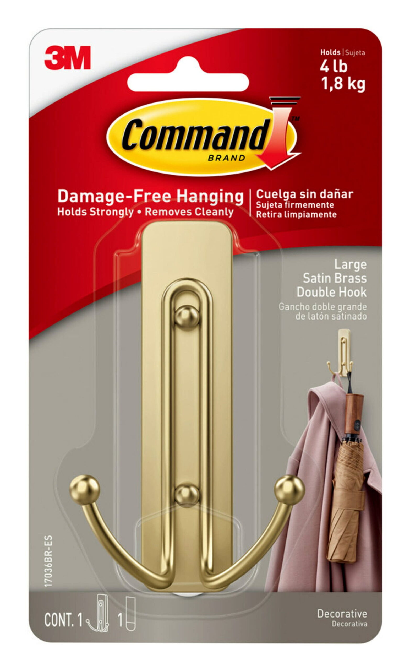 Command Large Double Wall Hooks, Damage Free Hanging of Dorm Room Decorations, 1 Hook