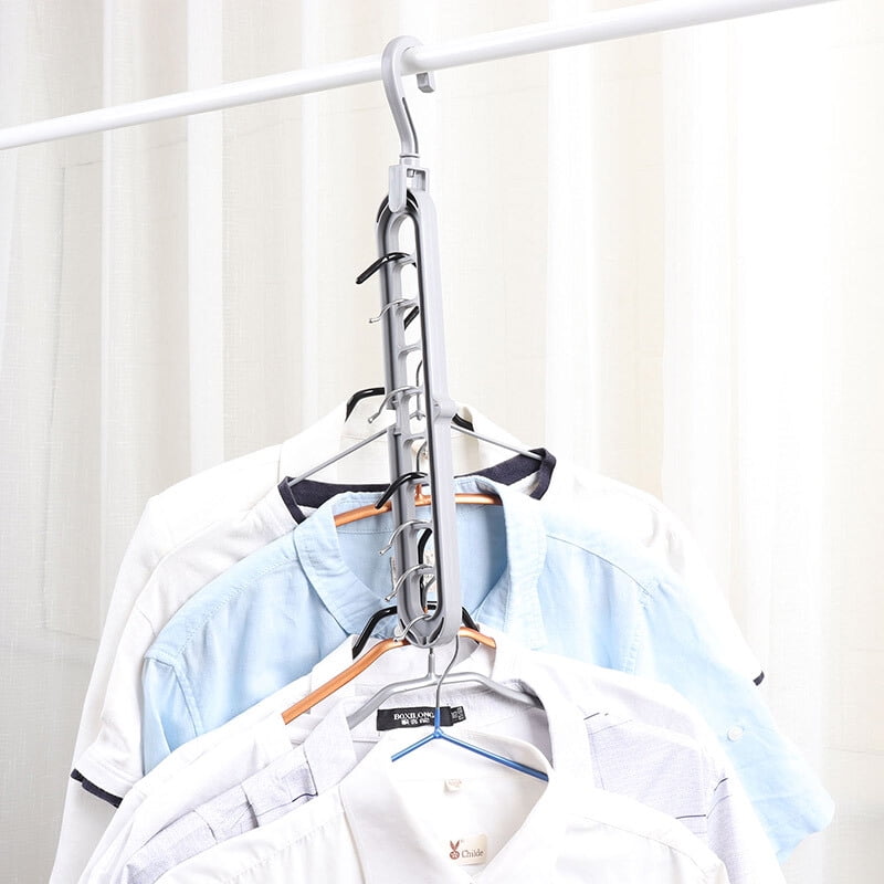 Creative Space-Saving Hangers 1Pcs Magic Clothes Hanger Organizer Rotate Anti-Skid Folding Hanger Multifunction Cascading Features for Drying and Storage to Family (Gray)