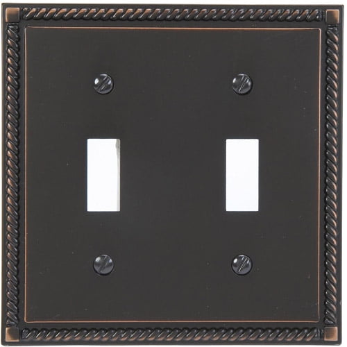 Elumina 54TTVBNB Georgian Tumbled Wallplate, 2 Toggle, Cast Metal, Aged Bronze, 1-Pack