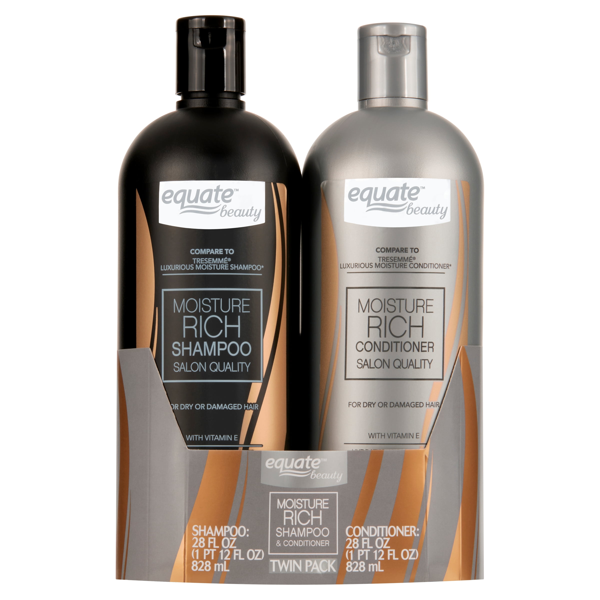 Equate Beauty Moisture Rich Shine Enhancing Daily Shampoo & Conditioner with Vitamin E, Full Size Set – 2 Piece