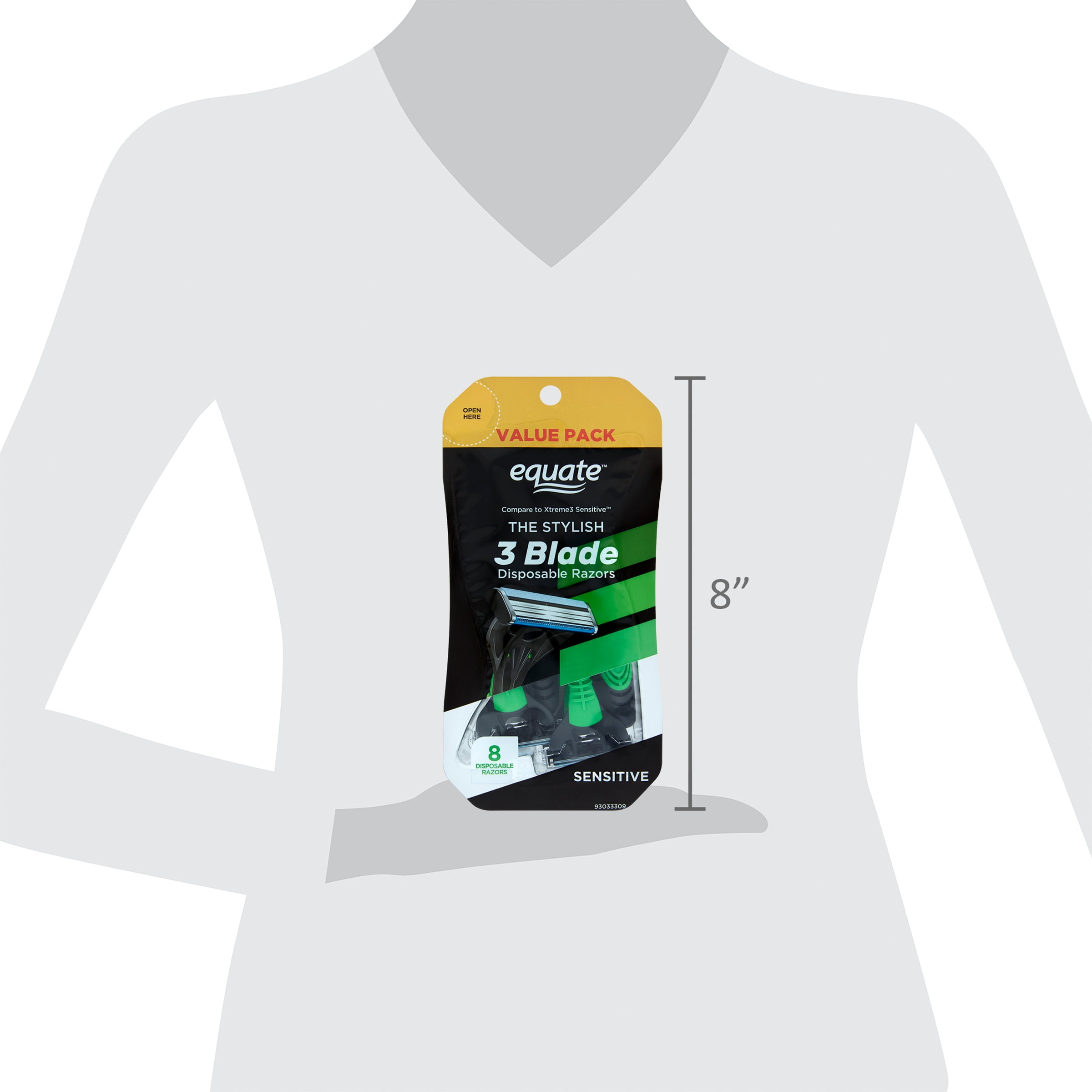 Get a close shave that will leave your sensitive skin feeling silky smooth and soft with Equate The Stylish 3 Blade Sensitive Disposable Razors Value Pack. These 3-blade razors are dermatologist tested, feature a double-coated blade edge for a close, comfortable shave and include a lubricating strip with soothing vitamin E to help reduce irritation. With 8 razors per value package, you’ll never be without a blade when you need one. Say goodbye to 5 o’clock shadow with Equate The Stylish 3 Blade Sensitive Disposable Razors Value Pack. Making the right health decisions can be challenging. With a complete range of products and simple solutions, Equate allows you to take care of your family with confidence.