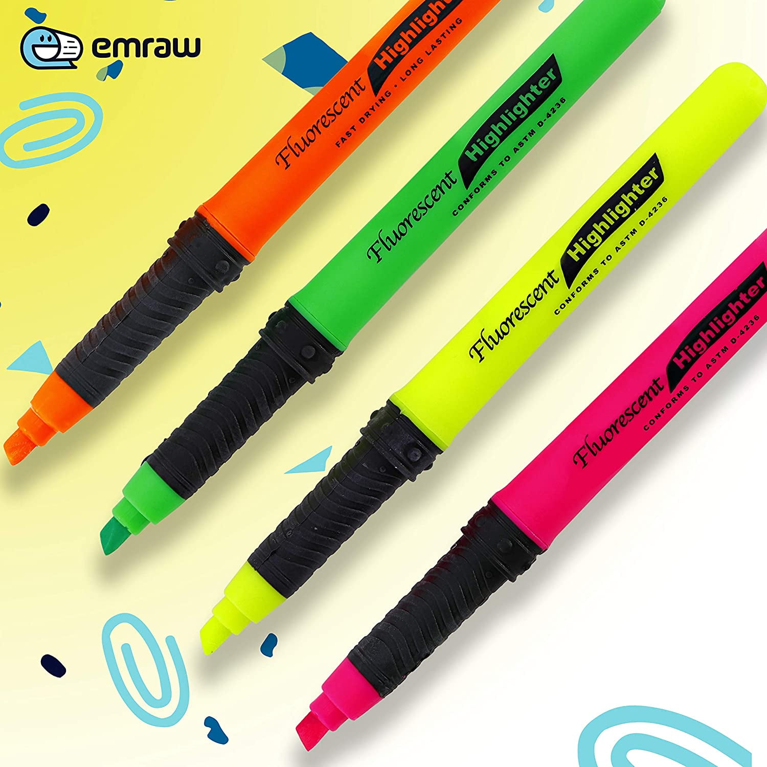 - ✓ The Emraw Assorted Fluorescent Colours Pen Style Smooth Glide Solid Highlighter with Cushion Grip Student Study Kit – For Office, School & Home (Pack of 2) is just ideally suited for all highlighting needs. Moreover, the fluorescent ink is just perfect to highlight the required information in the best possible manner (Pack of 2).