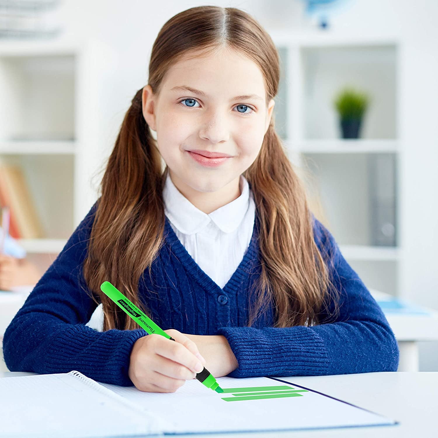 - ✓ QUALITY: The Fluorescent Highlighter comes with a smooth glide solid which makes sure that it does not bleed through paper, and works very well on almost all paper surfaces including thin as well as glossy papers. The premium quality gel in the highlighters enables the users to have a phenomenal experience at the time of highlighting.