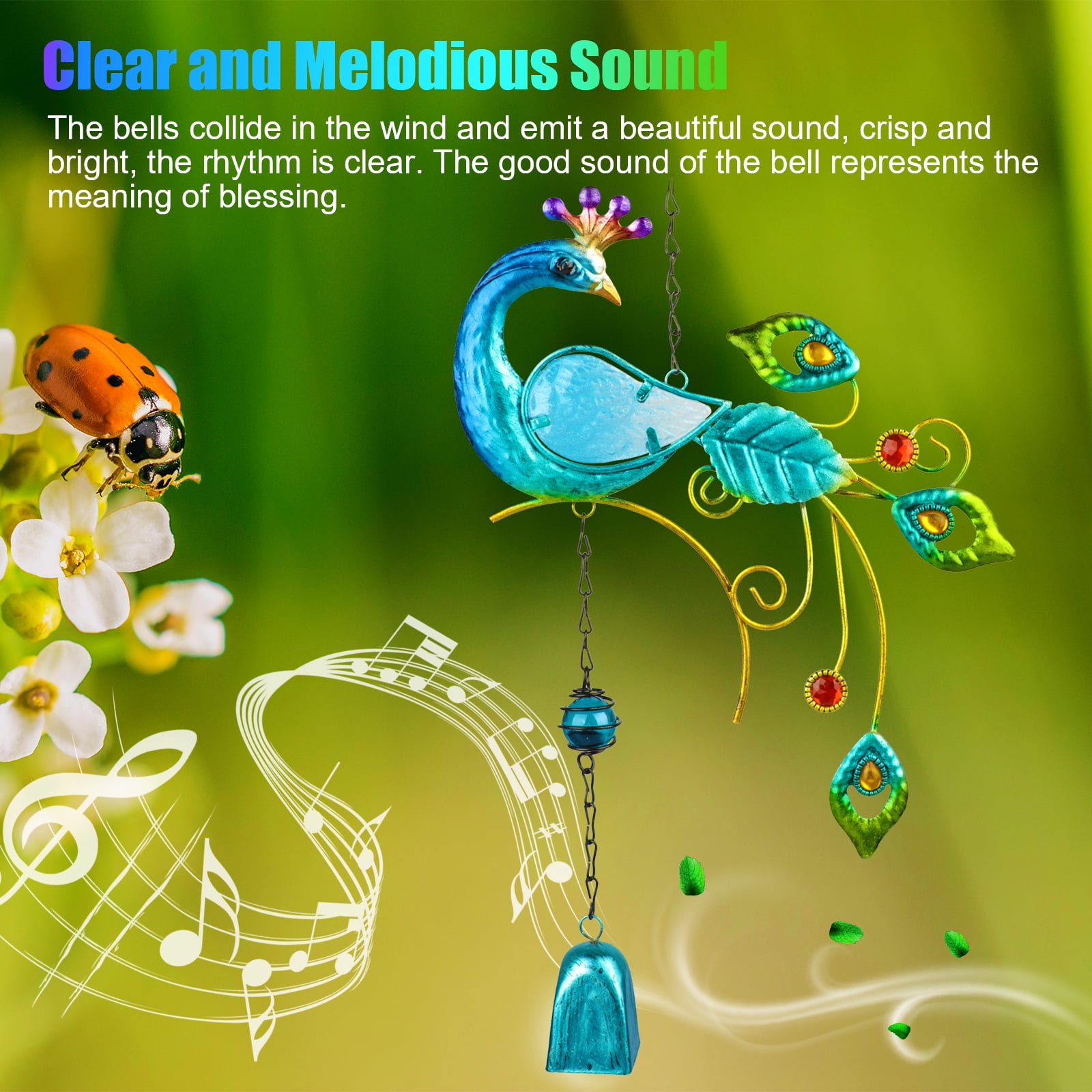 - Enjoy the soft relaxing sound of the bell from the retro Peacock wind chime