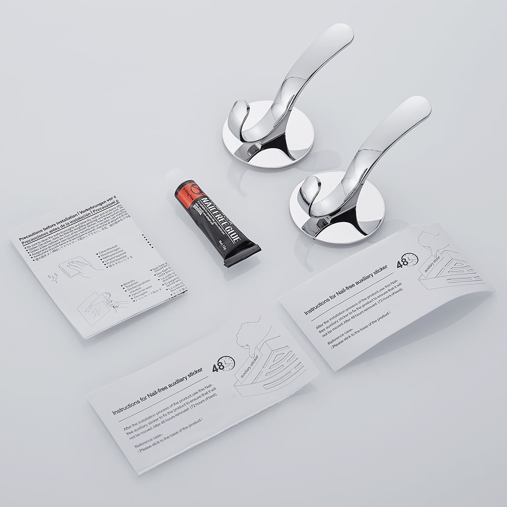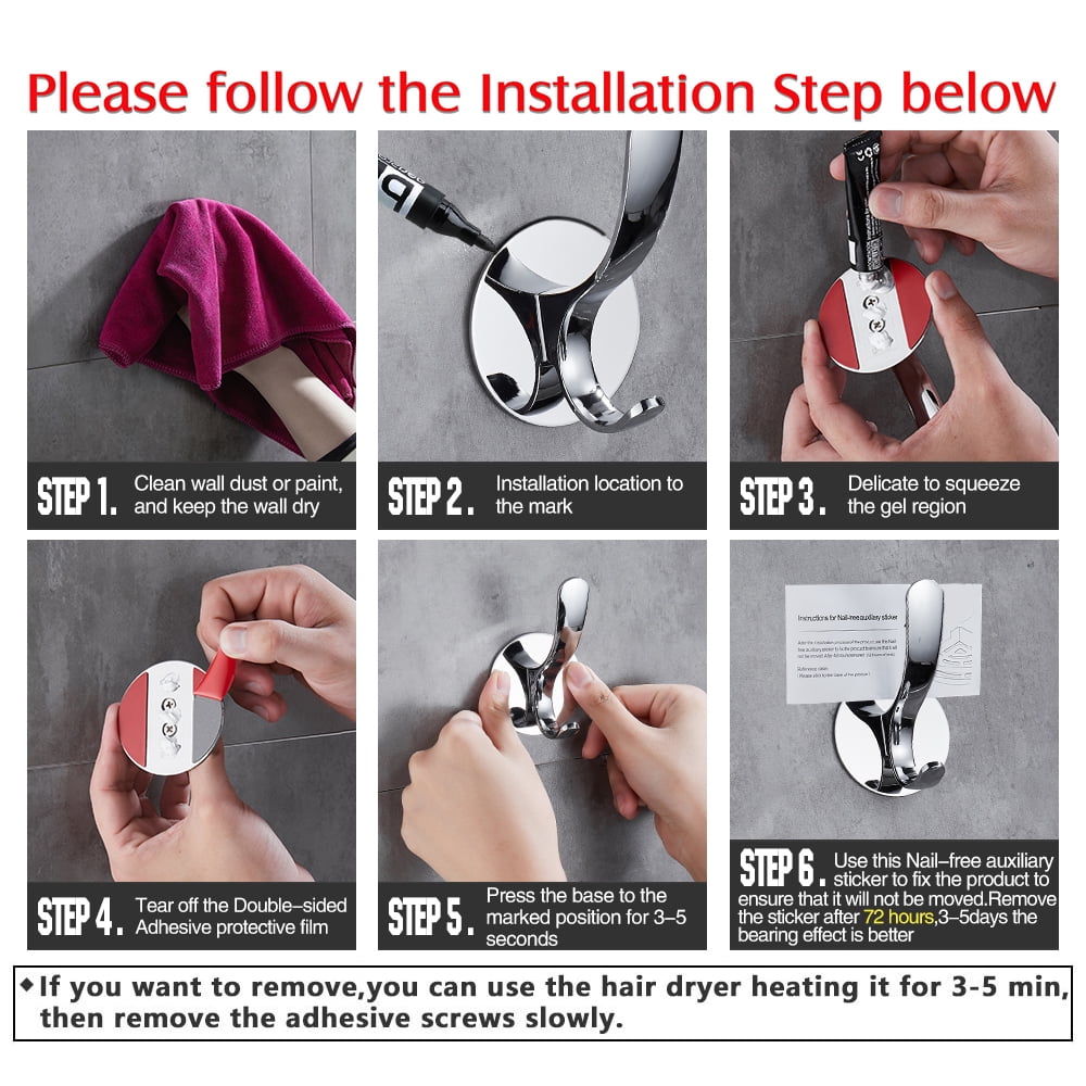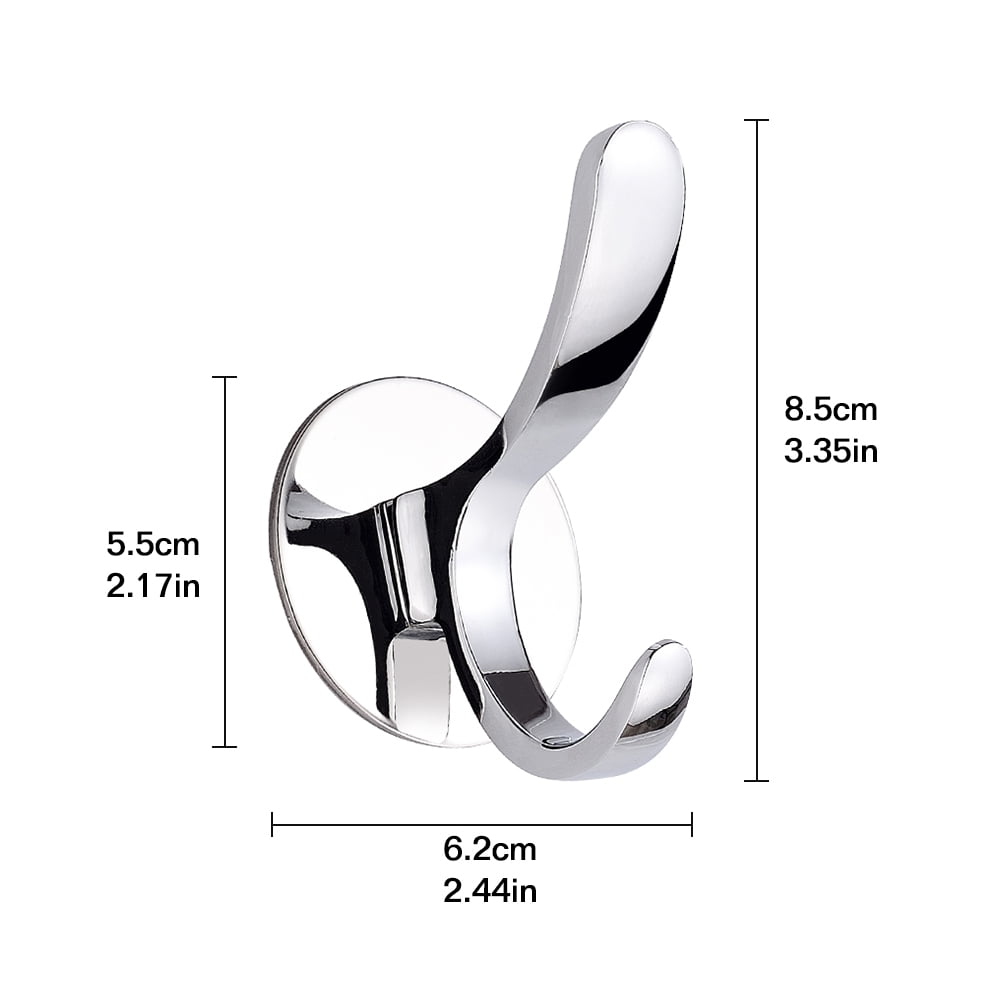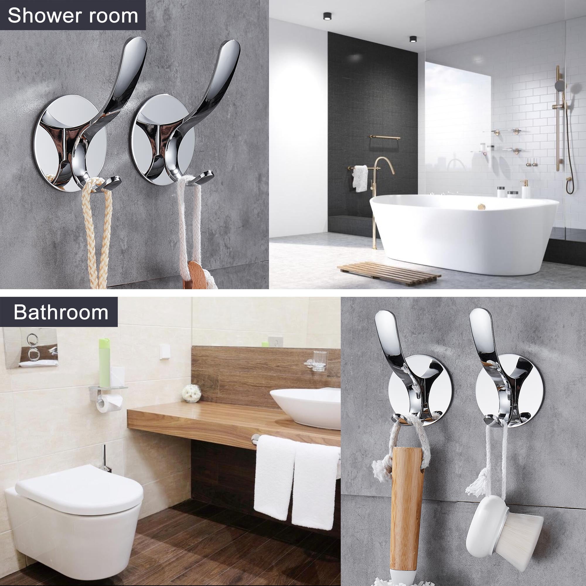 GERUIKE Towel Hooks 2 Pack Stainless Steel Robe Coat Hook Self Adhesive, Wall Mounted Towel Hook for Bathroom Kitchen, Silver