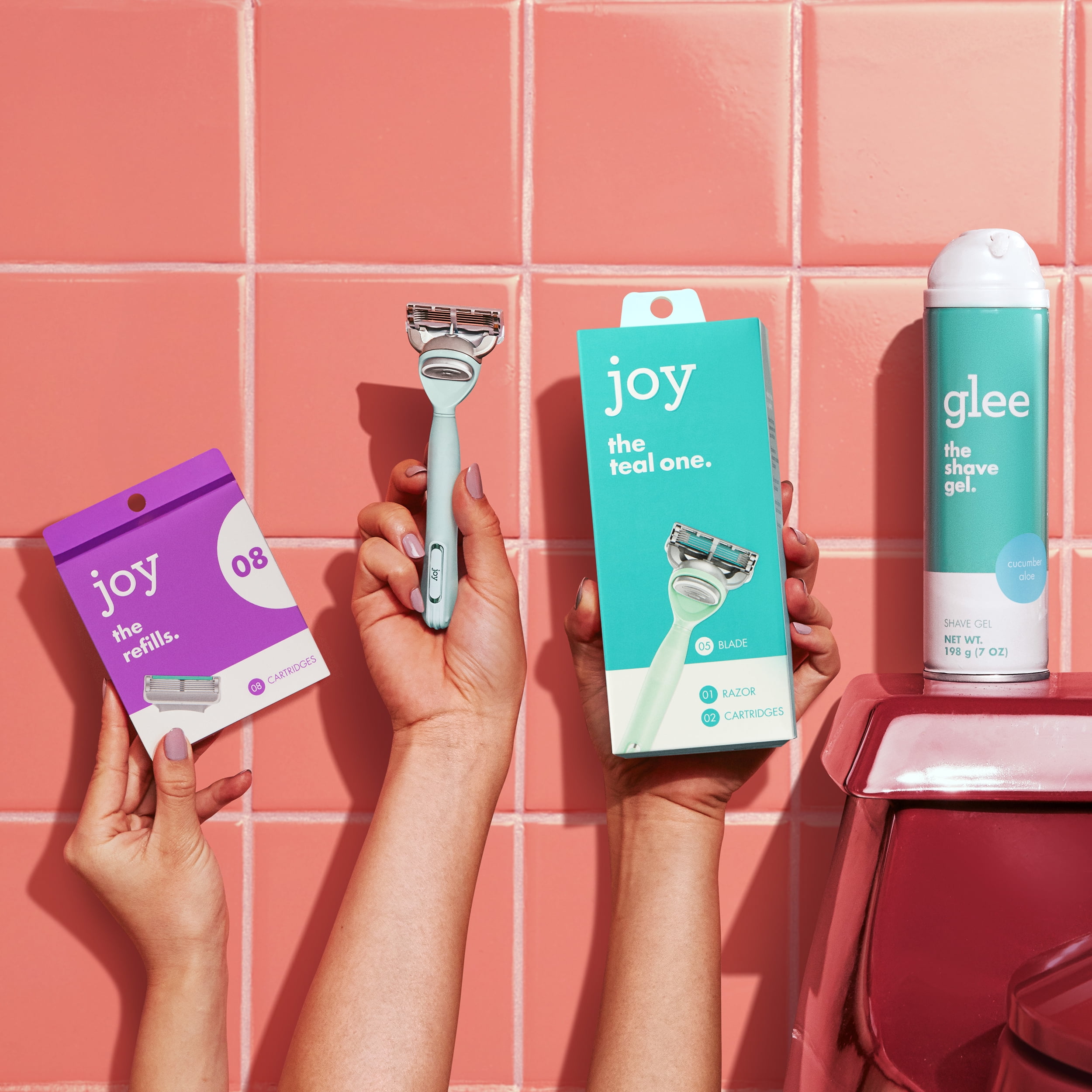 meet joy glee. we get it, sometimes shaving is a chore and a razor is simply the tool you use to get the job done. plus, shopping for the right razor can feel overwhelming when all you’re looking for is something that works. that’s why we wanted to bring it all back to the essentials and be honest about what shaving really is – body maintenance. we know that nobody really enjoys shaving, so we’re here to help you get a great shave and get it over with. put simply, we have you covered…just not in hair. joy pairs well with glee, not just because they are synonyms, but because they are a razor and a shave gel. with our glee shave gel, experience the luxury of a rich, cucumber aloe-scented shave even if you’re in your not-at-all-cucumber-aloe-scented dorm’s communal shower. to experience glee, distribute shave gel onto wet skin. shave, rinse, and get on to more important things, like finishing a full season of that show you’re super into right now.