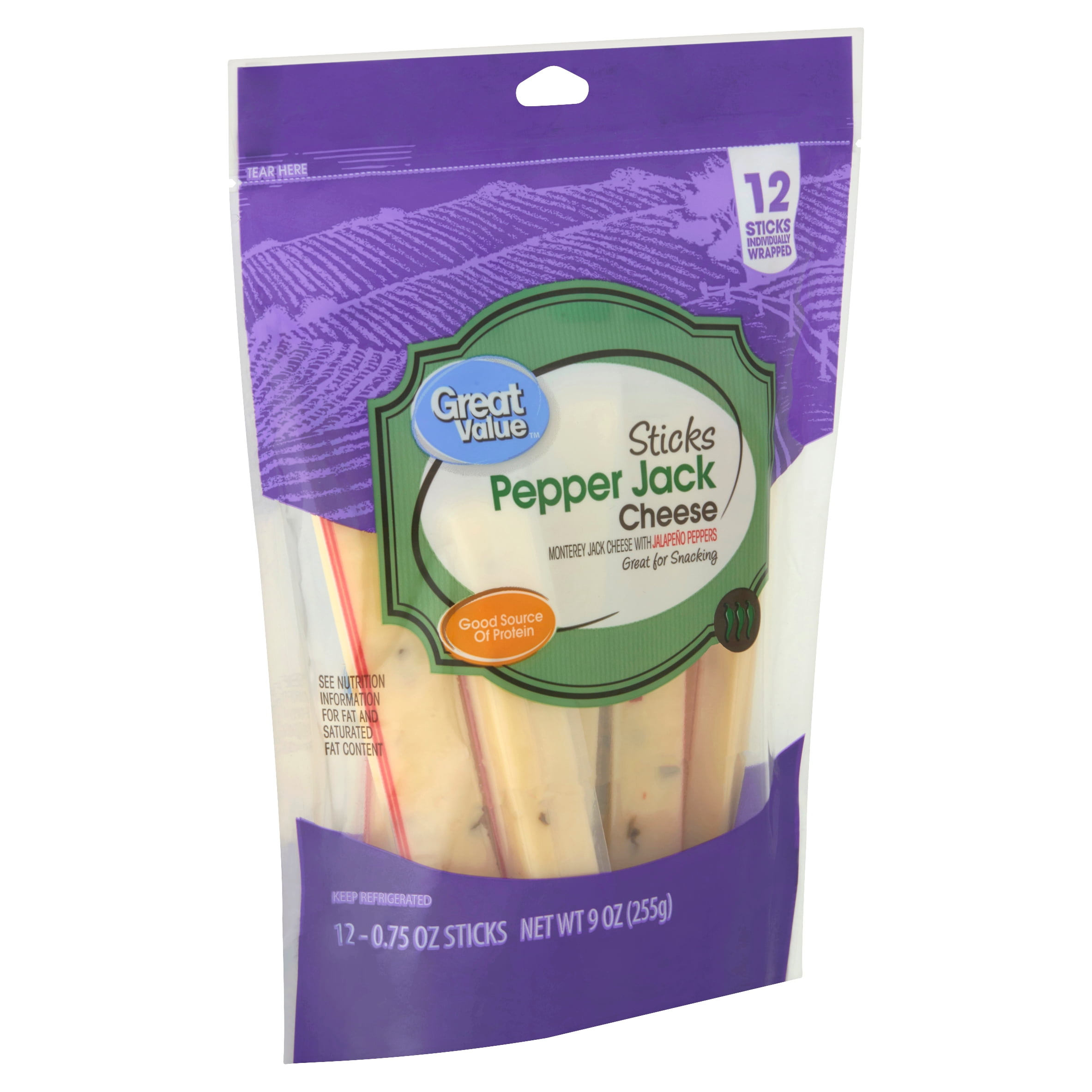 Great Value Pepper Jack Cheese Sticks, 0.75 oz, 12 count
