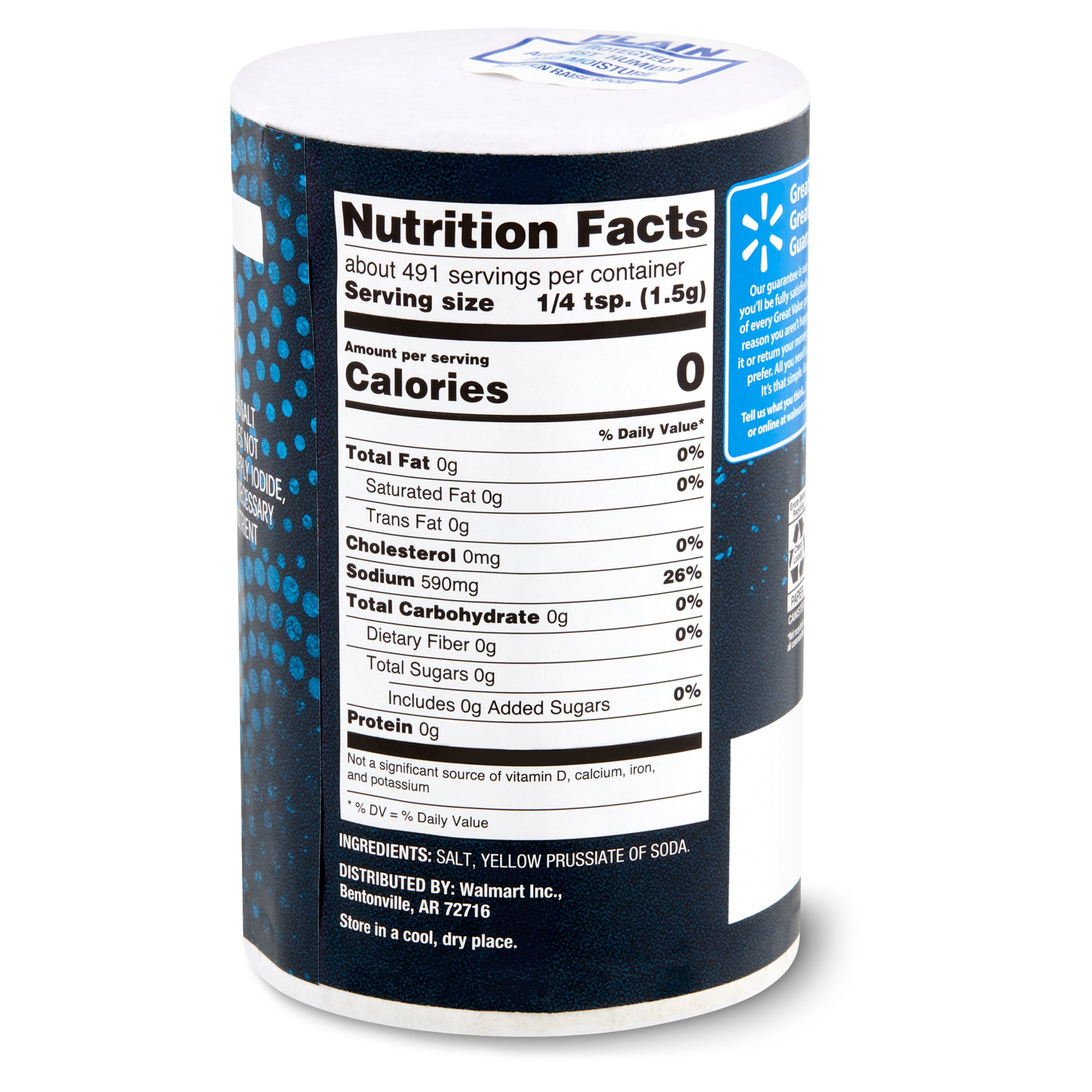 Great Value Plain Salt is great for enhancing the flavors of your food. This seasoning is the perfect staple for your spice drawer. Great for adding to most savory dishes like chicken, fish, roasted veggies, and more. You can use it to add depth to savory dishes like caramel, brownies, or sprinkle over a slice of watermelon. Not only great for adding flavor to your dishes use it to cure various meats. It comes in pour spout bottle for your convenience. Give your foods a blast of flavor with Great Value Plain Salt.