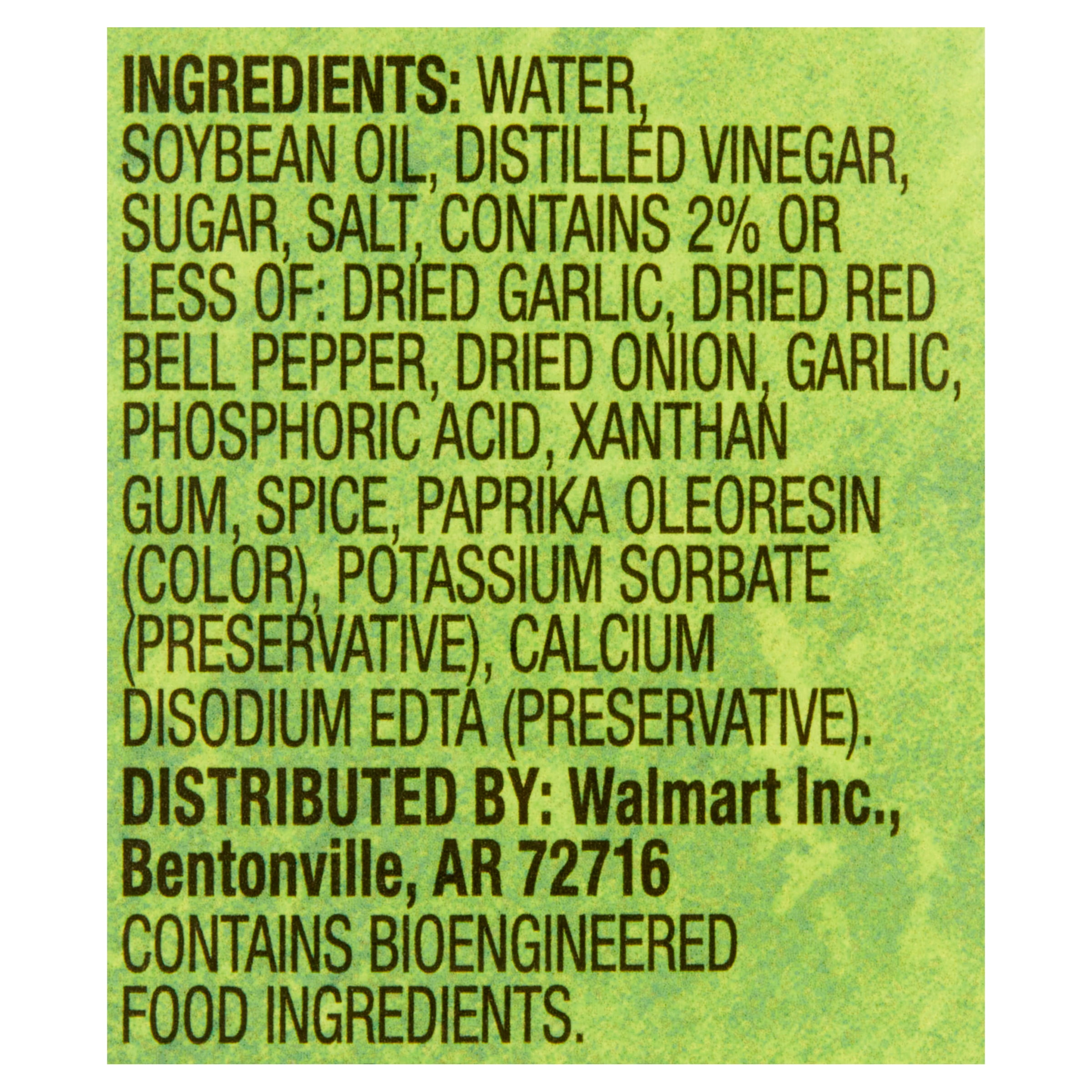 Great Value Italian Dressing has a zesty garlic flavor with onion and a hint of bell pepper. In addition to enhancing a traditional green salad, this dressing is great as an ingredient in pasta salads or as a marinade for poultry. Drizzle on handcrafted sandwiches for a kick of wonderful flavor. This dressing has only 60 calories per serving and contains no trans-fat or cholesterol. It comes in a reclosable bottle to keep your dressing fresh after every use. Turn any meal into a memory with a drizzle of Great Value Zesty Italian Dressing and Marinade. Great Value products provide families with affordable, high quality grocery and household consumable options. With our wide range of product categories spanning grocery and household consumables, we offer you a variety of products for your family’s needs.