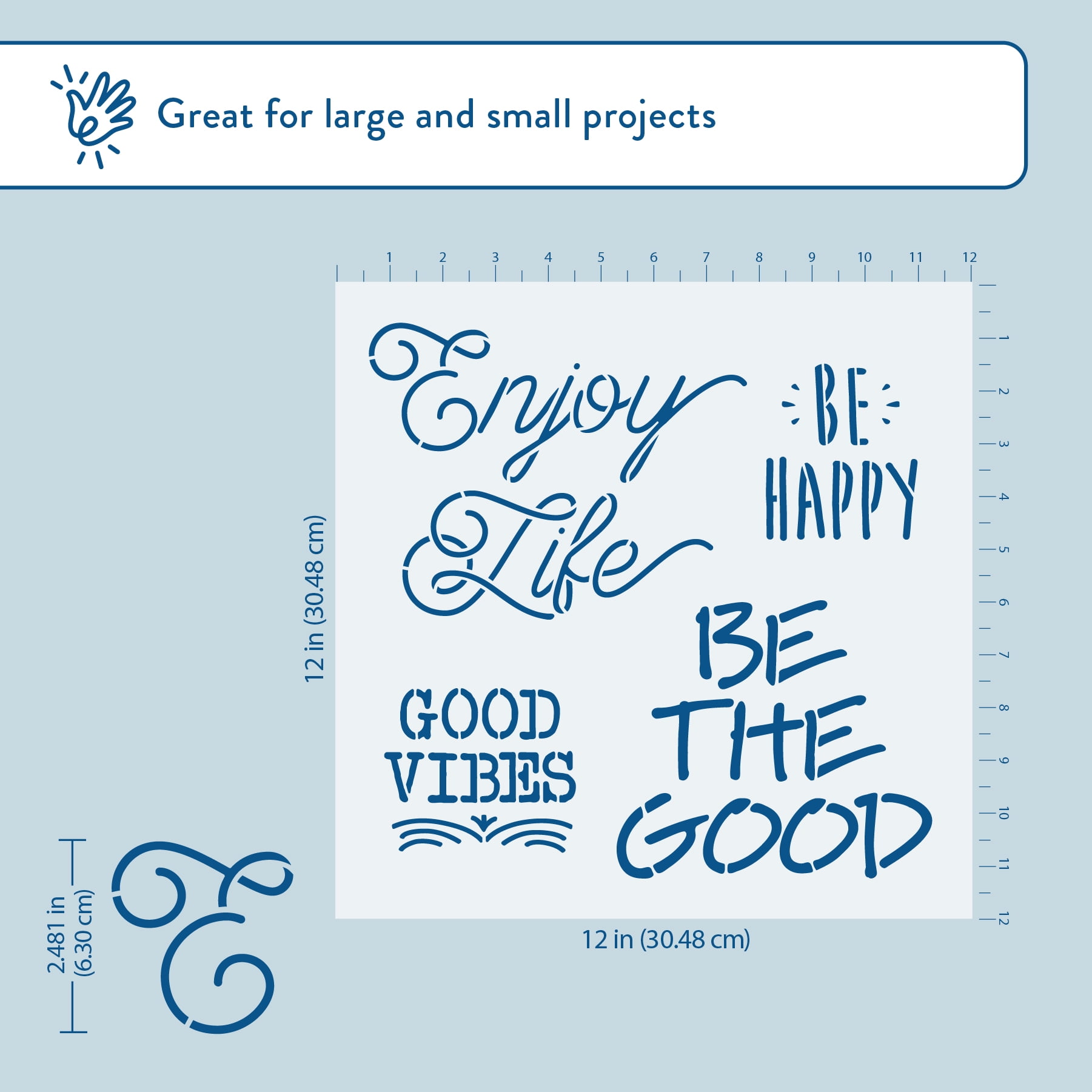 - SIMPLE DESIGNS – This stencil pack of 9 designs features a variety of positive sayings and phrases that are simple and easy to use