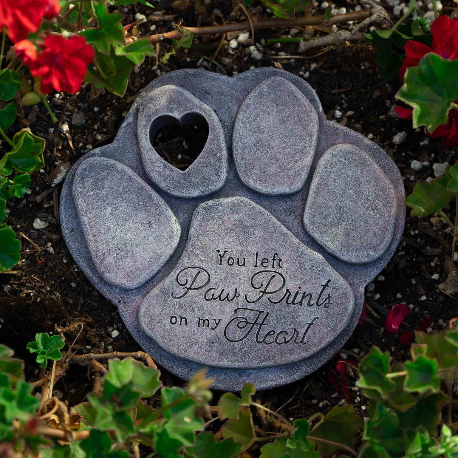 A dog’s paw prints leave a lasting impression on everything they touch, especially our hearts. Even when our furry friends cross the Rainbow Bridge, they’re still with us in all the beautiful memories. With this heartfelt memorial stone, your dog’s paws will forever be in your heart and in your garden, too. The pain of losing a dog is unbearable because dogs fill our lives with so much love and joy. So they deserve the most beautiful tribute ever. This meaningful memorial garden stone will look perfect among your favorite flowers because your dog’s beauty should be remembered always and forever.