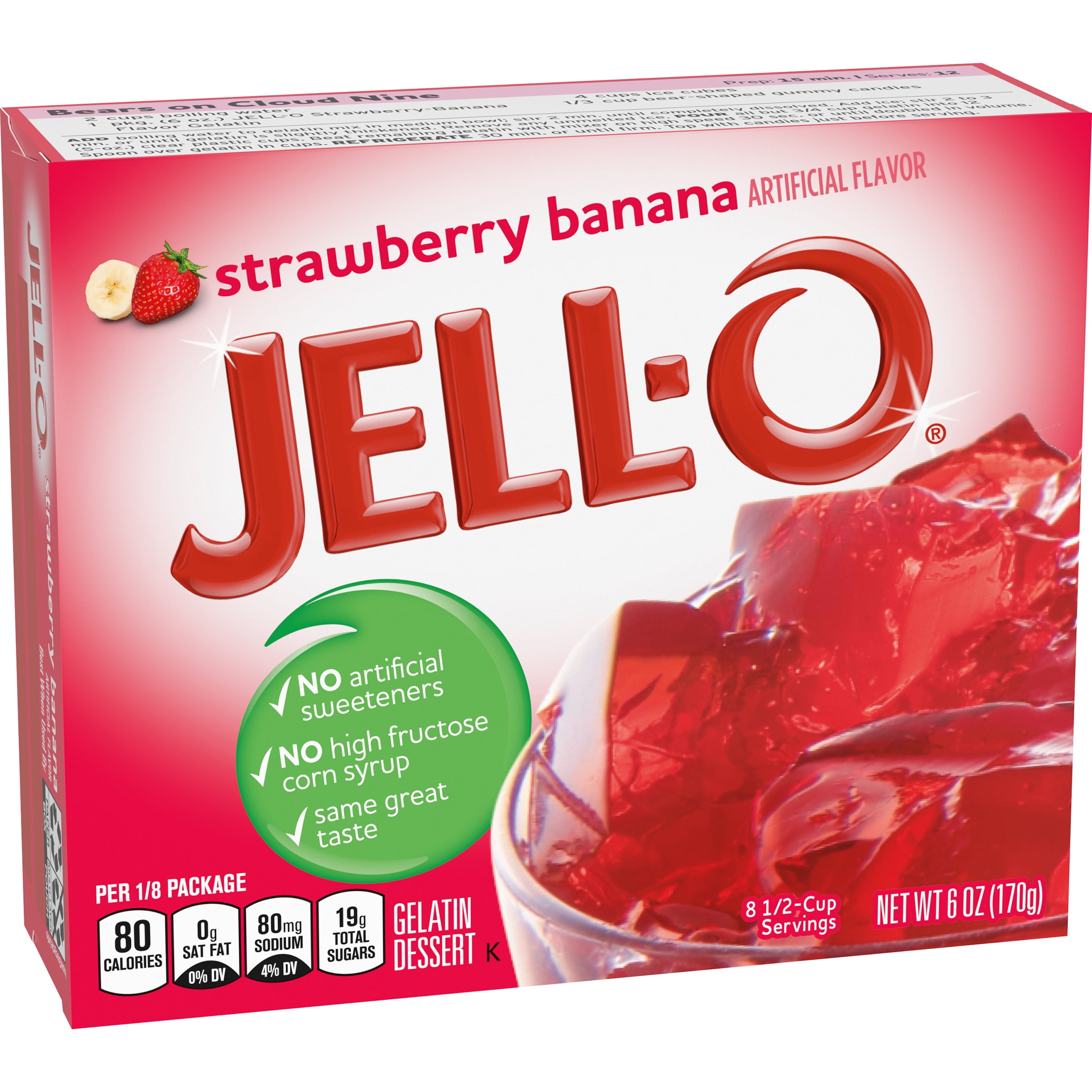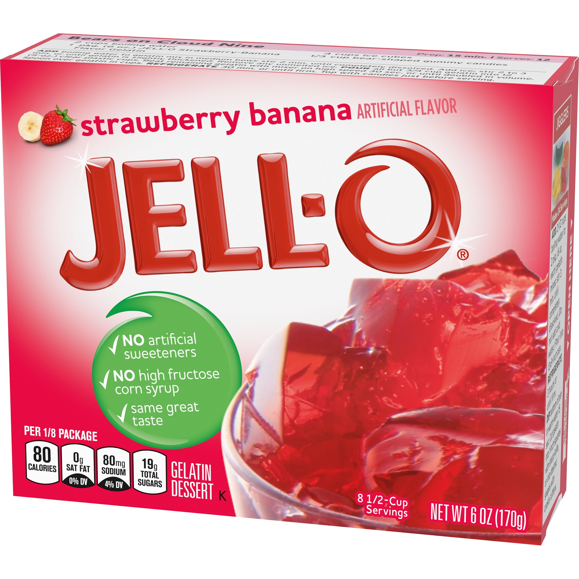 - Jell-O Strawberry Banana Instant Gelatin Mix is an easy to make strawberry banana flavored dessert