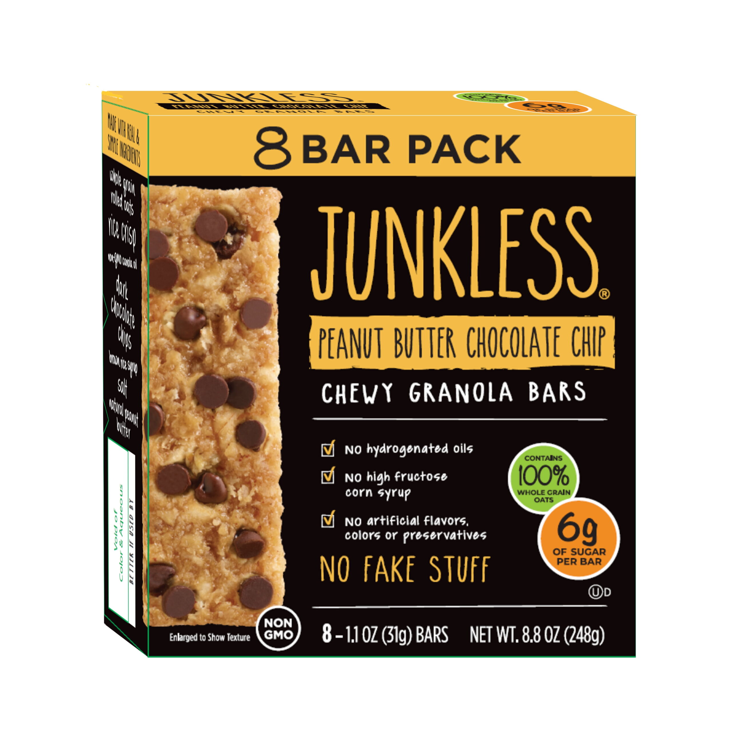 JUNKLESS Non-GMO Delicious Chewy Peanut Butter Chocolate Chip Granola Bars, 8 Ct, 1.1 oz