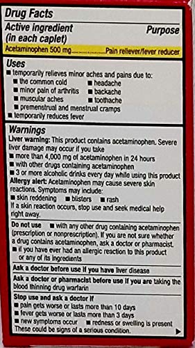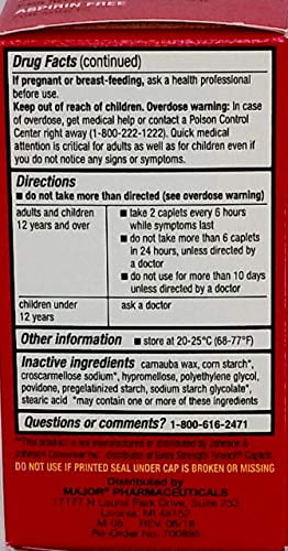 - Major Acetaminophen Caplets, 500mg, 100 count