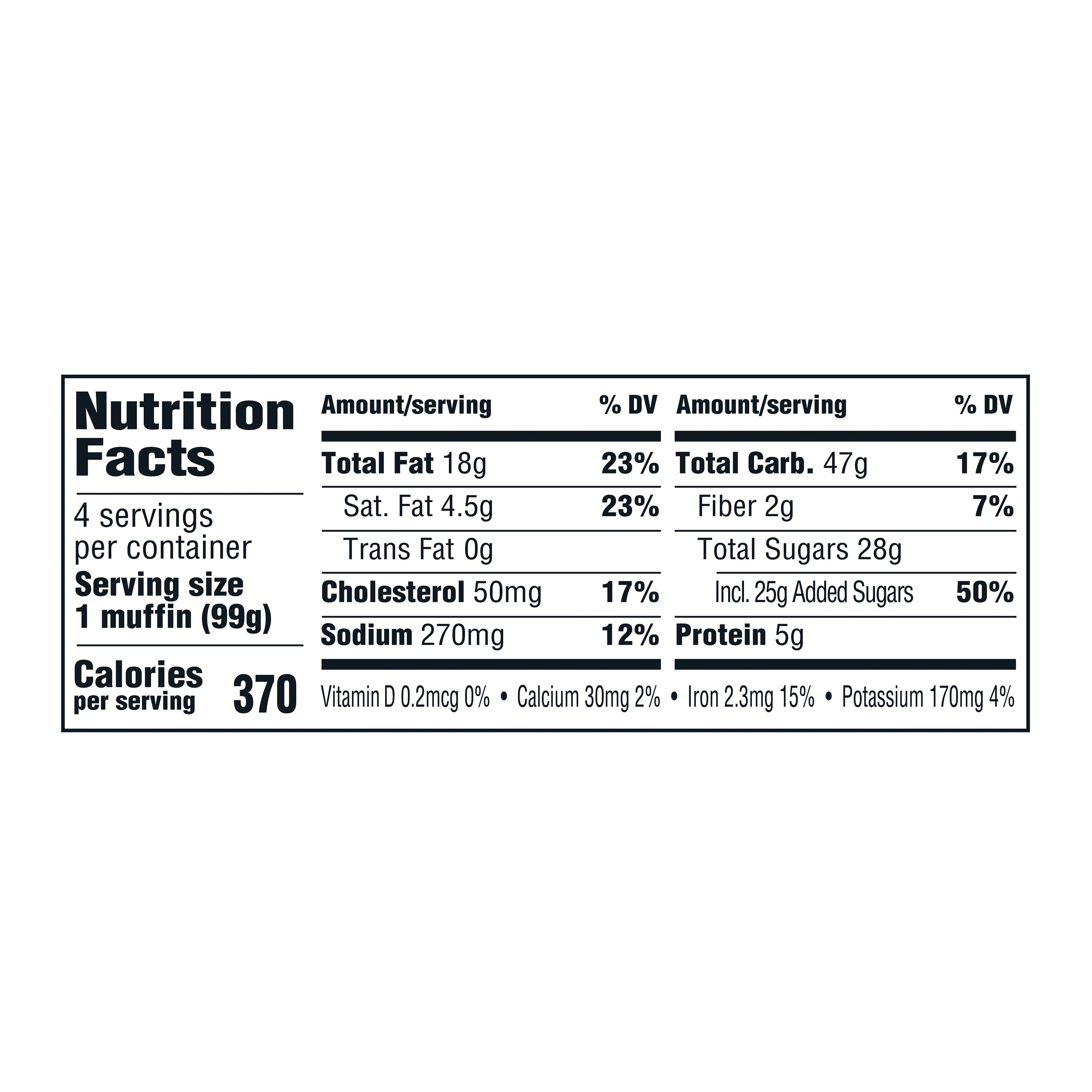 Marketside Banana Chocolate Chunk Muffins are sure to please the muffin lover in your home. Enjoy as an anytime treat for breakfast, lunch or after dinner treat. Made with real bananas, these exquisite banana muffins are moist, soft and loaded with chunks of decadent chocolate. They have a soft and fluffy texture on the inside and are topped sugar for a sweet crunch. Marketside muffins are baked to perfection using our quality recipe to provide a moist, soft bite with a perfect muffin top to create the ultimate muffin experience. Enjoy with a hot cup of coffee or tea, as a sweet treat with a cold glass of milk, or as a scrumptious dessert with a scoop of your favorite ice cream. Conveniently packaged with four muffins per pack in a resealable container to maintain freshness, these muffins are perfect to share with friends and family or savor by yourself. Fresh ideas and quality ingredients, that’s how Marketside brings the best foods to your table. We are committed to deliver freshness that you can taste and see. Marketside offers the best in fresh food, guaranteed by Walmart, working in partnership with farmers, bakers and chefs for the highest quality, authentic ingredients and favorite recipes.