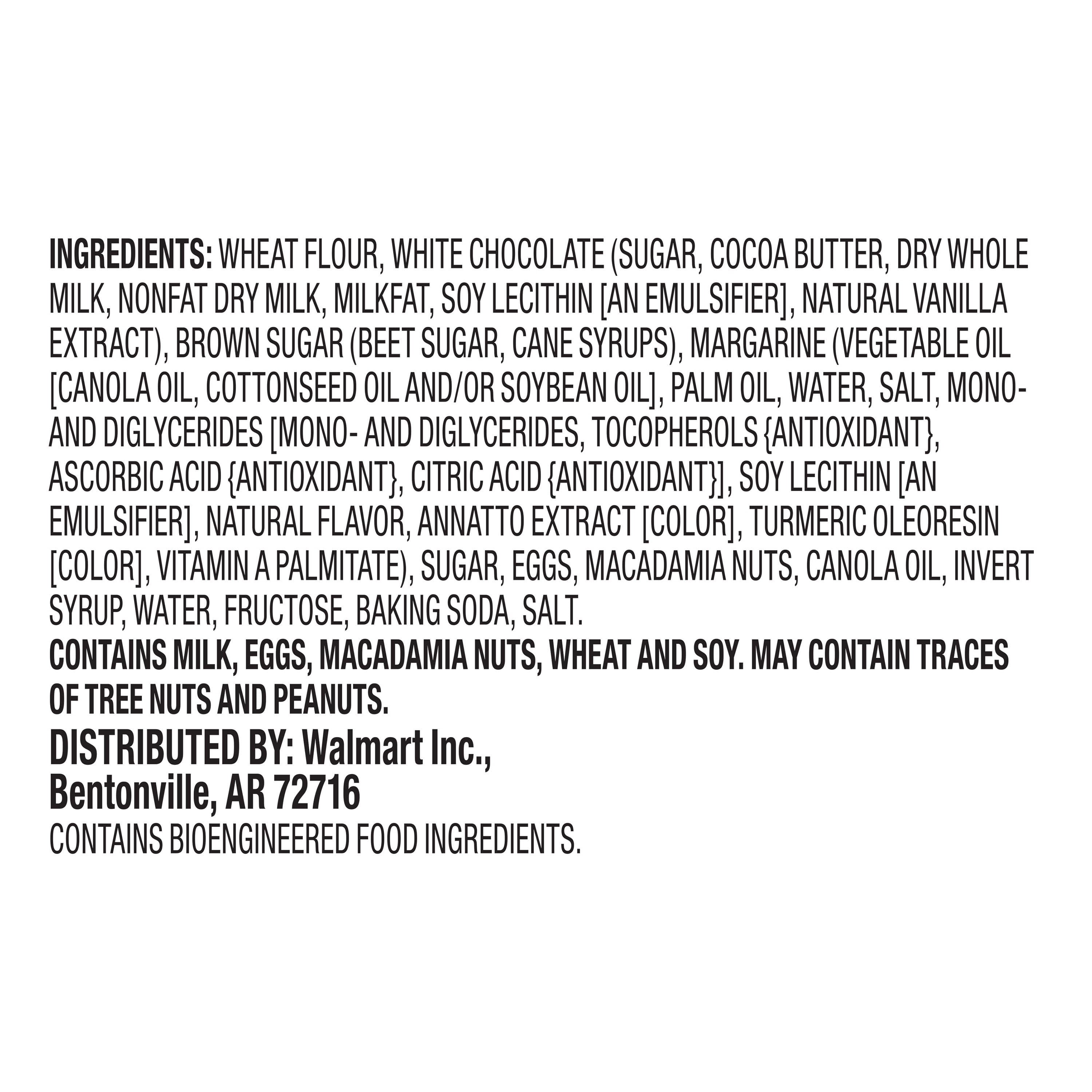 Marketside Bite Sized White Chocolate Macadamia Nut Cookies are loaded with white chocolate chips and macadamia nuts. They are easily the perfect partner for a cold, tall glass of milk or a scoop of your favorite ice cream. These cookies come in a recloseable plastic container to help maintain their freshness. Each container includes 48 bite sized cookies, perfect to share with friends, family, or coworkers for celebrations or as an anytime treat. Bring home these flavorful Marketside Bite Sized White Chocolate Macadamia Nut Cookies for everyone to enjoy today.Fresh ideas and quality ingredients, that’s how Marketside brings the best foods to your table. We are committed to deliver freshness that you can taste and see. Marketside offers the best in fresh food, guaranteed by Walmart, working in partnership with farmers, bakers and chefs for the highest quality, authentic ingredients and favorite recipes.
