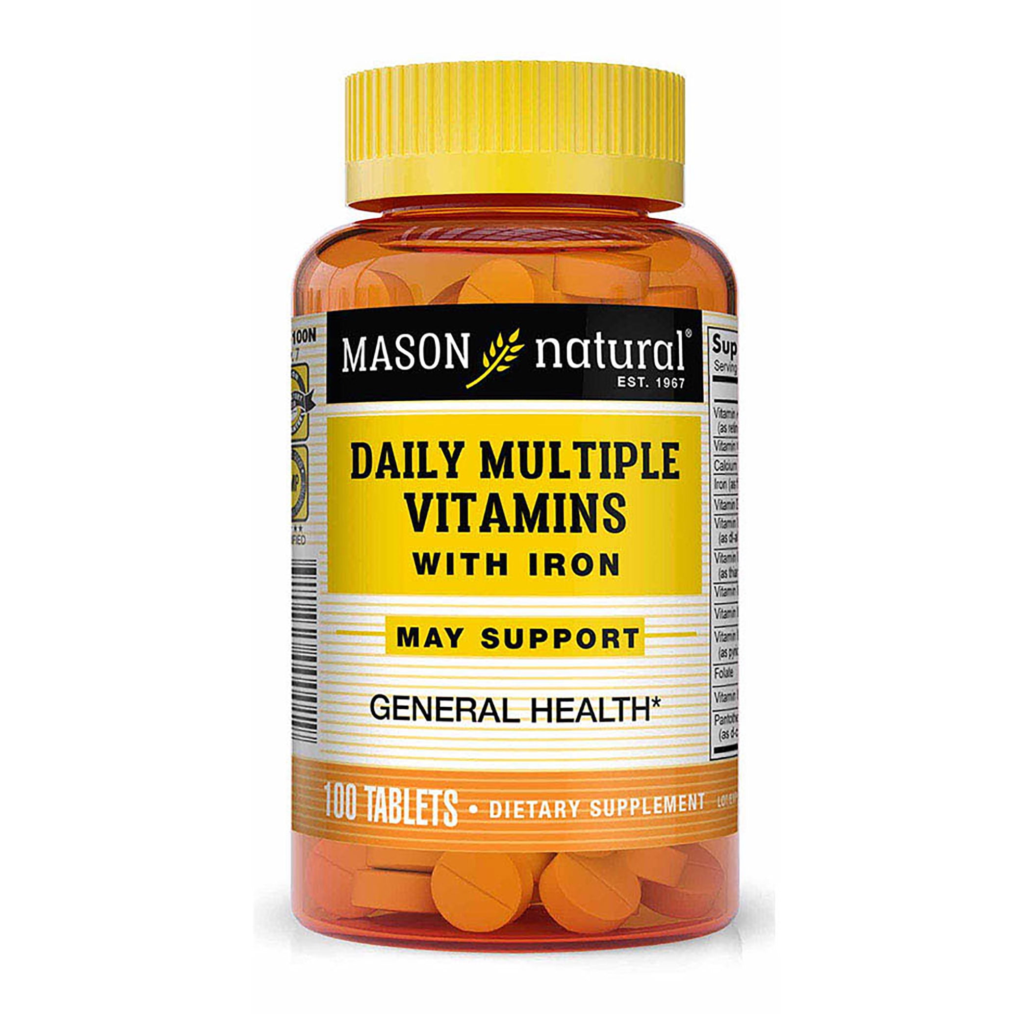 Mason Natural Daily Multiple Vitamins with Iron, Vitamins A, C, D, E, B1, B2, B3, B6, B12, Folate and Calcium for Overall Health, 100 Tablets