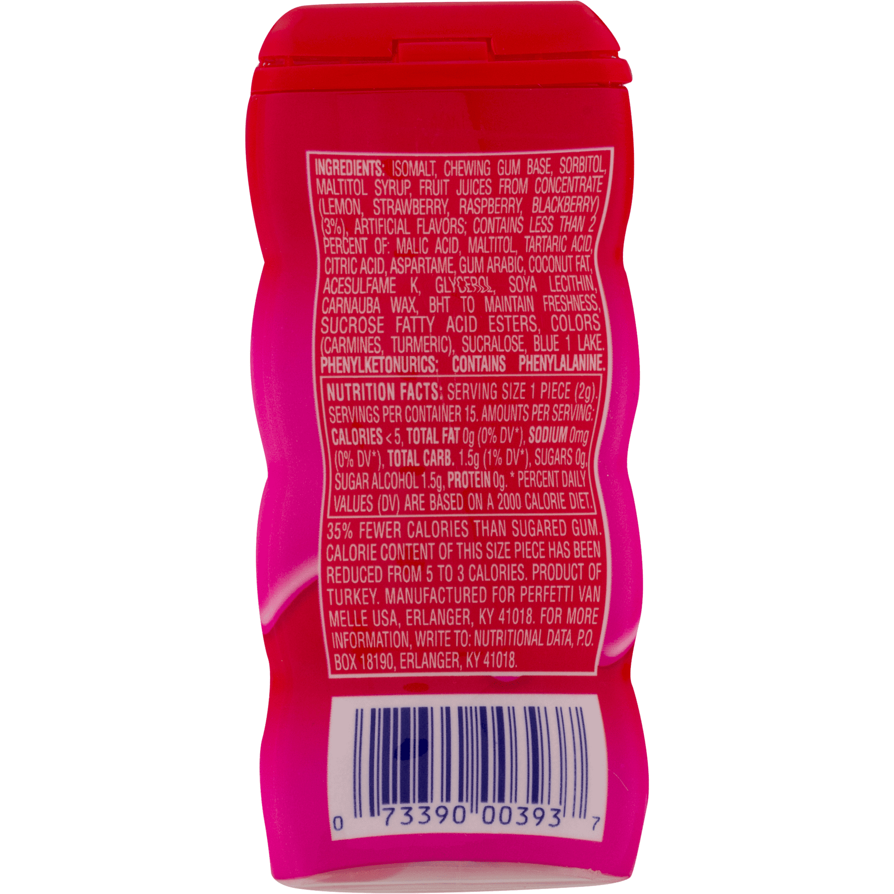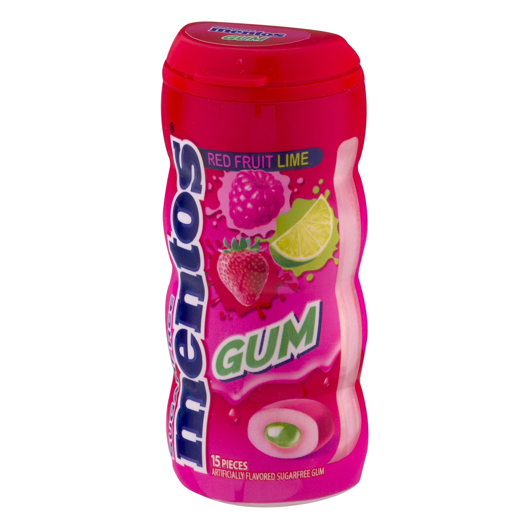 Mentos Sugar-Free Gum contains 40 percent fewer calories than sugared gum. It has a soft center with 3.5 calories in each piece. This package of red fruit lime gum contains 15 pieces in each container. The gum is made with a delicious mix of juice from concentrated lime and red fruit flavors such as raspberry, strawberry and blackberry. Less than two percent of the container is made with artificial flavors. The product comes in an appealing shake bottle. It does not contain any fats. Keep a bottle on your desk so you will be able to grab one before an important meeting. Store a bottle in your car’s glove compartment.