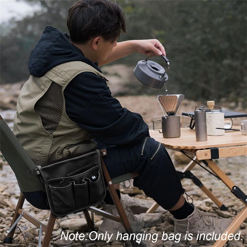 Multi-Pocket Chair Side Hanging Bag Canvas Hanging Organizer Beside Storage Bag for Camping Table