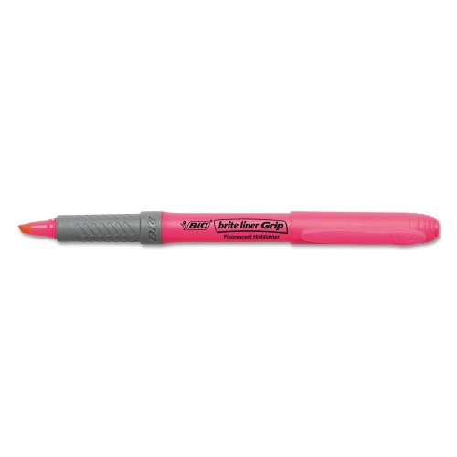 BIC Brite Liner Grip Pocket Highlighters have super-bright fluorescent ink for attention-grabbing highlighting and a textured rubber grip for added comfort. Chisel tip is ideal for both broad highlighting and fine underlining. Won’t dry out if the cap is left off for eight hours. Highlighter Style: Pen; Highlighter Ink Color: Assorted; Color Family: Multicolor; Highlighter Ink Color Assortment: Fluorescent Blue; Fluorescent Green; Fluorescent Orange; Fluorescent Pink; Fluorescent Yellow. Pocket-style highlighter with super-bright fluorescent ink. Textured rubber grip for added comfort. Chisel tip for broad highlighting or fine underlining. Won’t dry out if the cap is left off for eight hours.New BIC Brite Liner Grip Pocket Highlighter , Chisel Tip, Assorted Colors, 5/Set,Each