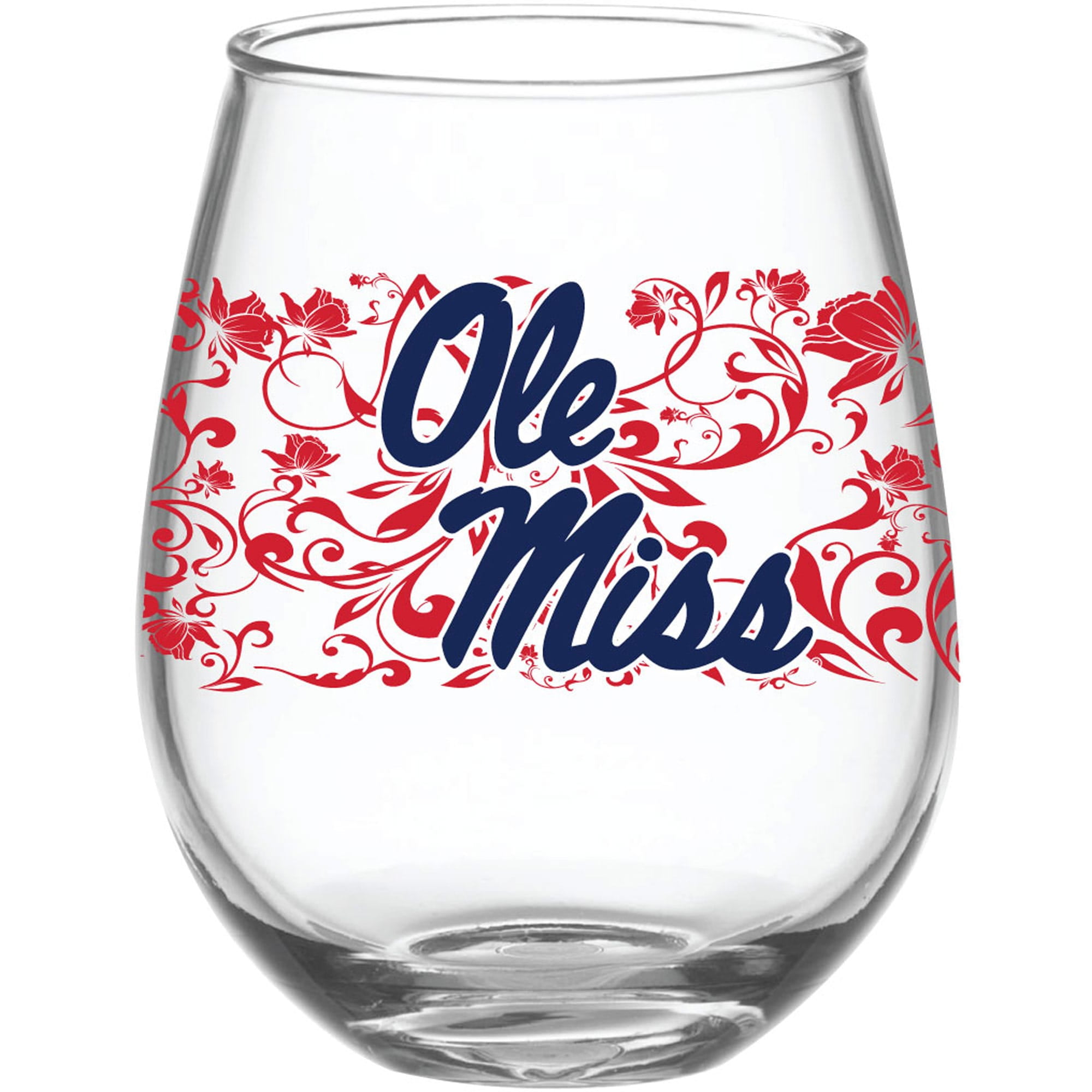 Ole Miss Rebels 15oz. Floral Stemless Wine Glass