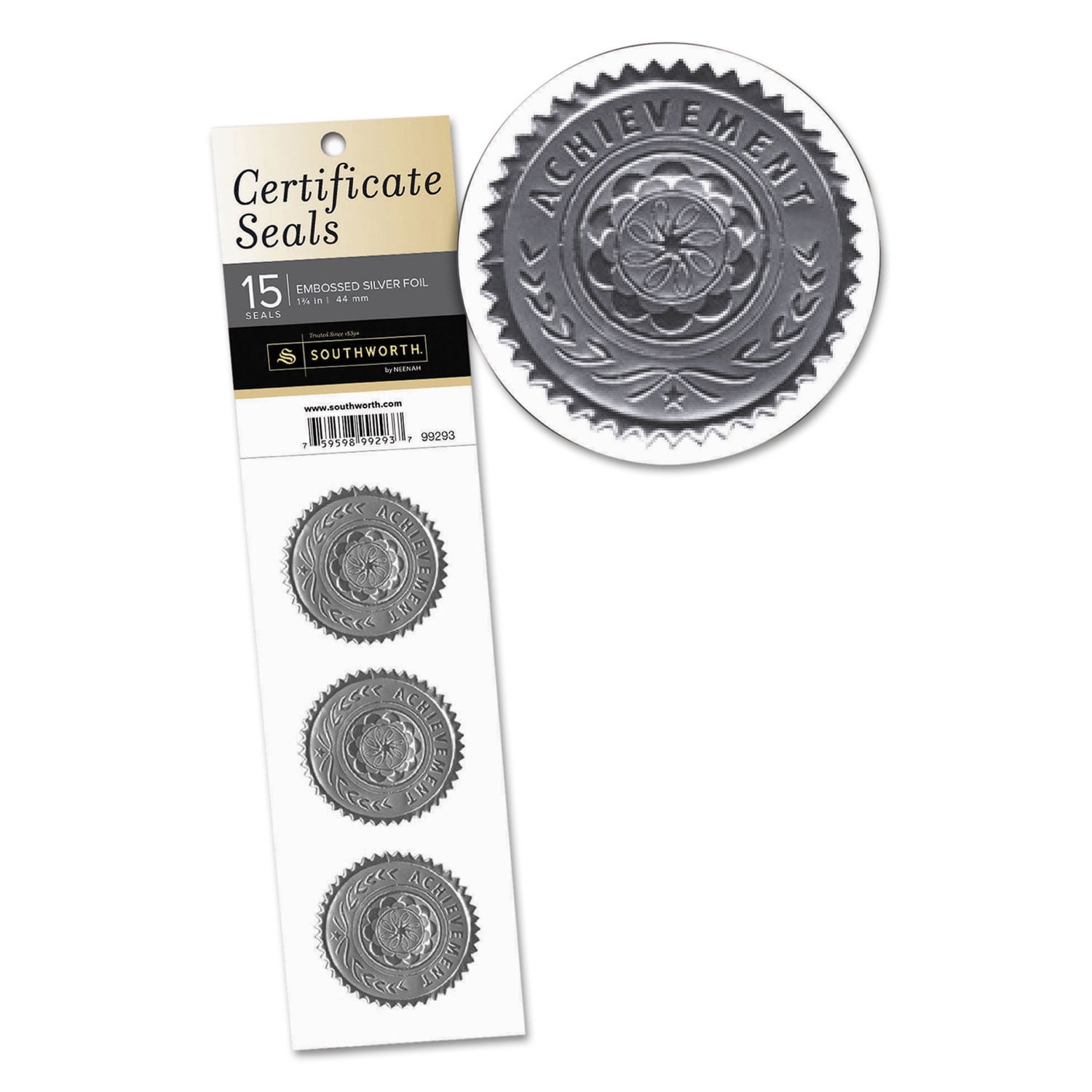 Southworth Certificate Seals 1.75′ dia. Silver 3/Sheet 5 Sheets/Pack 99293