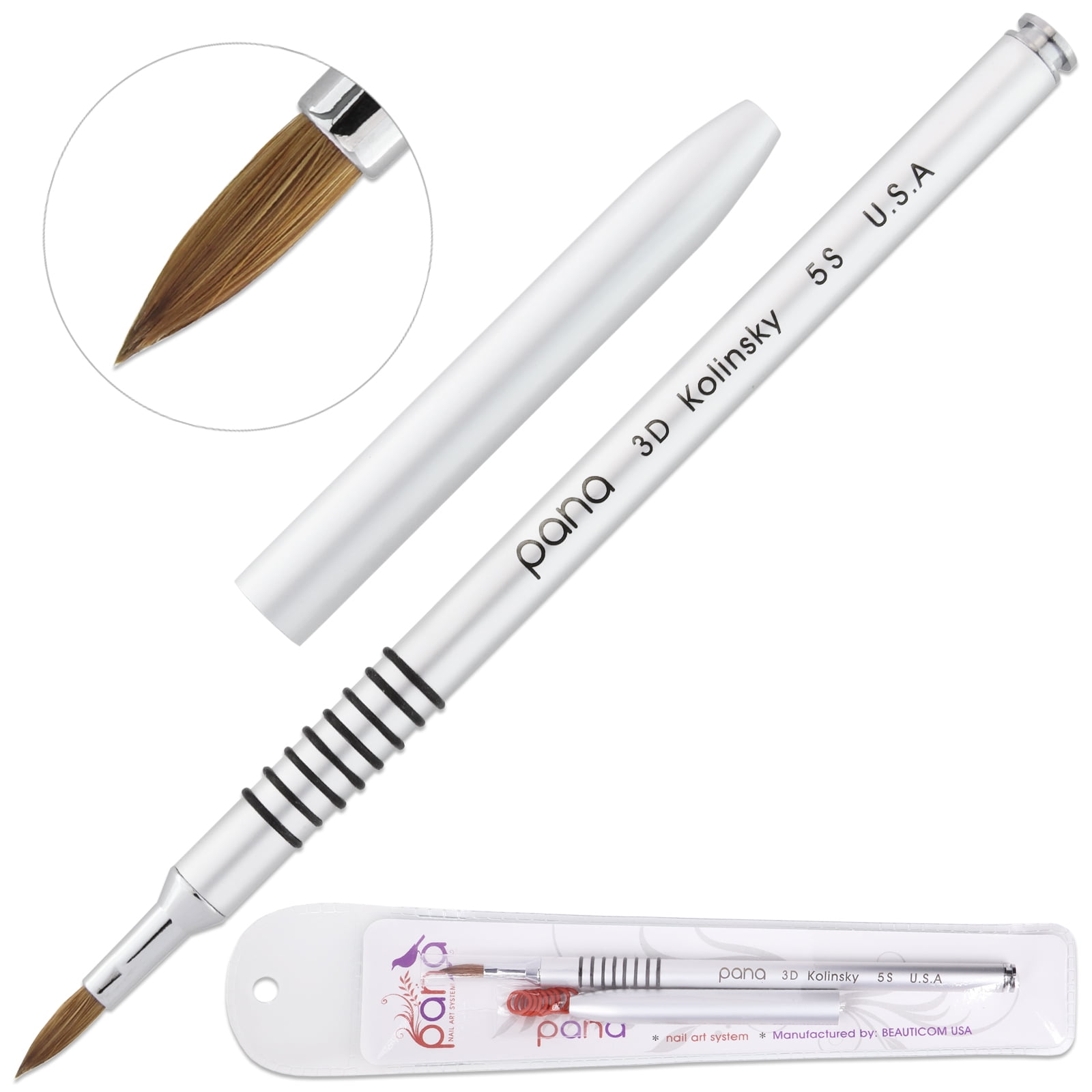PANA USA 3D Kolinsky Nail Art Brush Silver Metal with Non-Slip Handle Acrylic Nail Art Brush Sculpture Brush (Size # 5)