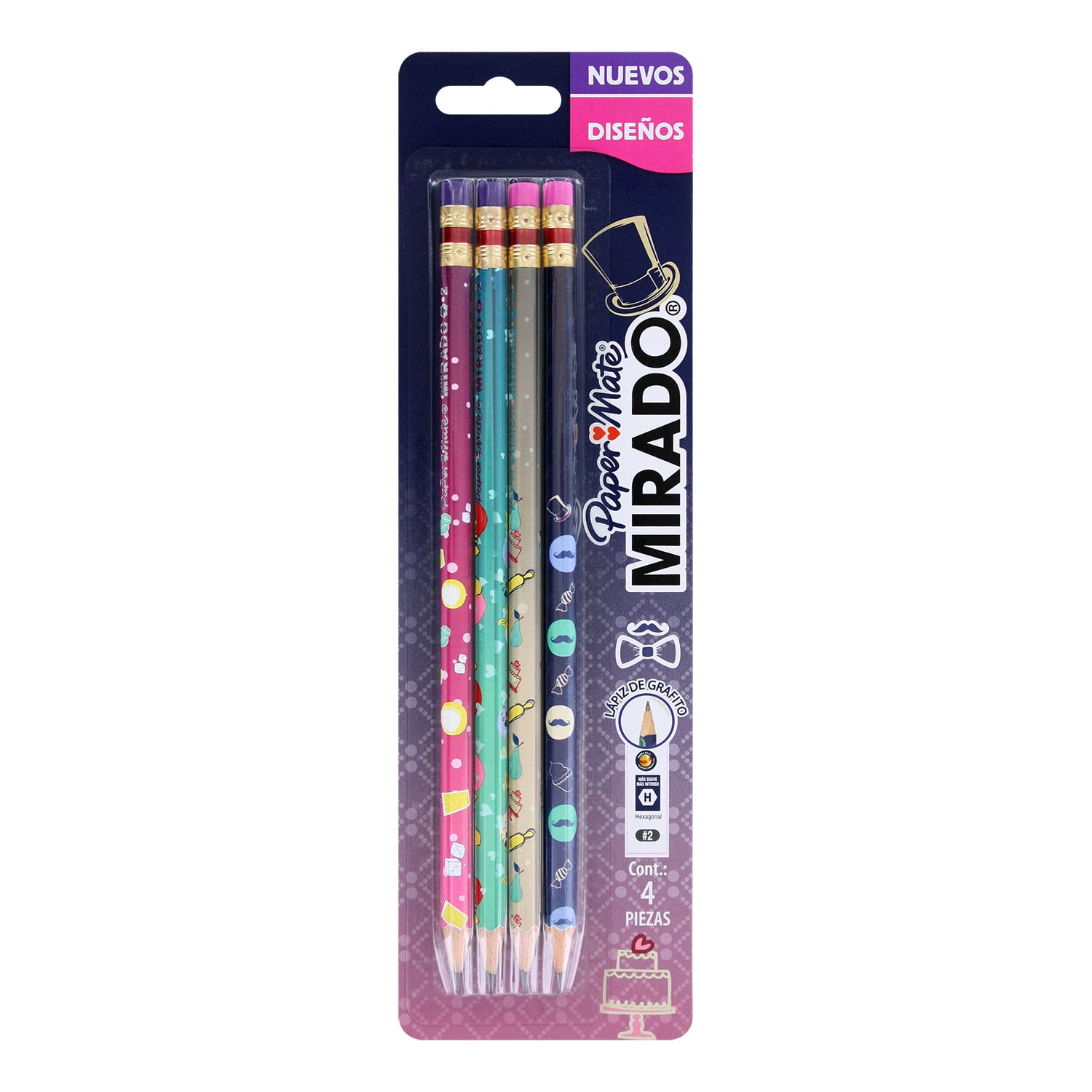 Wooden pencil with hexagonal shape. Graphite lead grade # 2 ideal for standardized tests. Smoother and intense writing. Eraser that won’t stain or tear paper. Red band symbol of controlled quality. Modern and fun designs.
