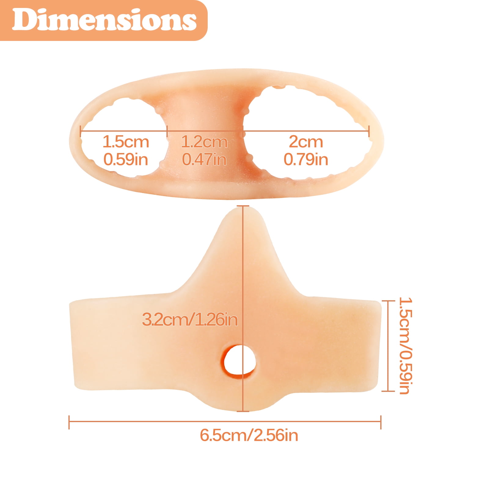 Big Toe Spacer size: Total L*W: 6.5*3.2cm(2.56*1.26in)