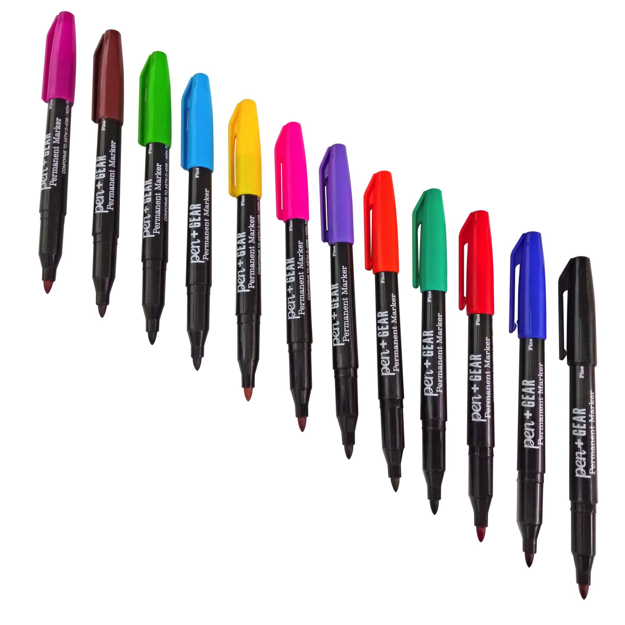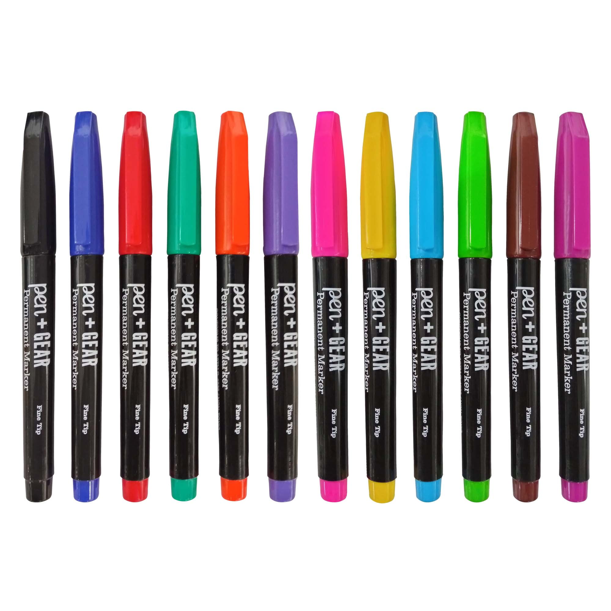 Pen + Gear Permanent Marker, Fine Tip, Assorted Colors, 12 Count
