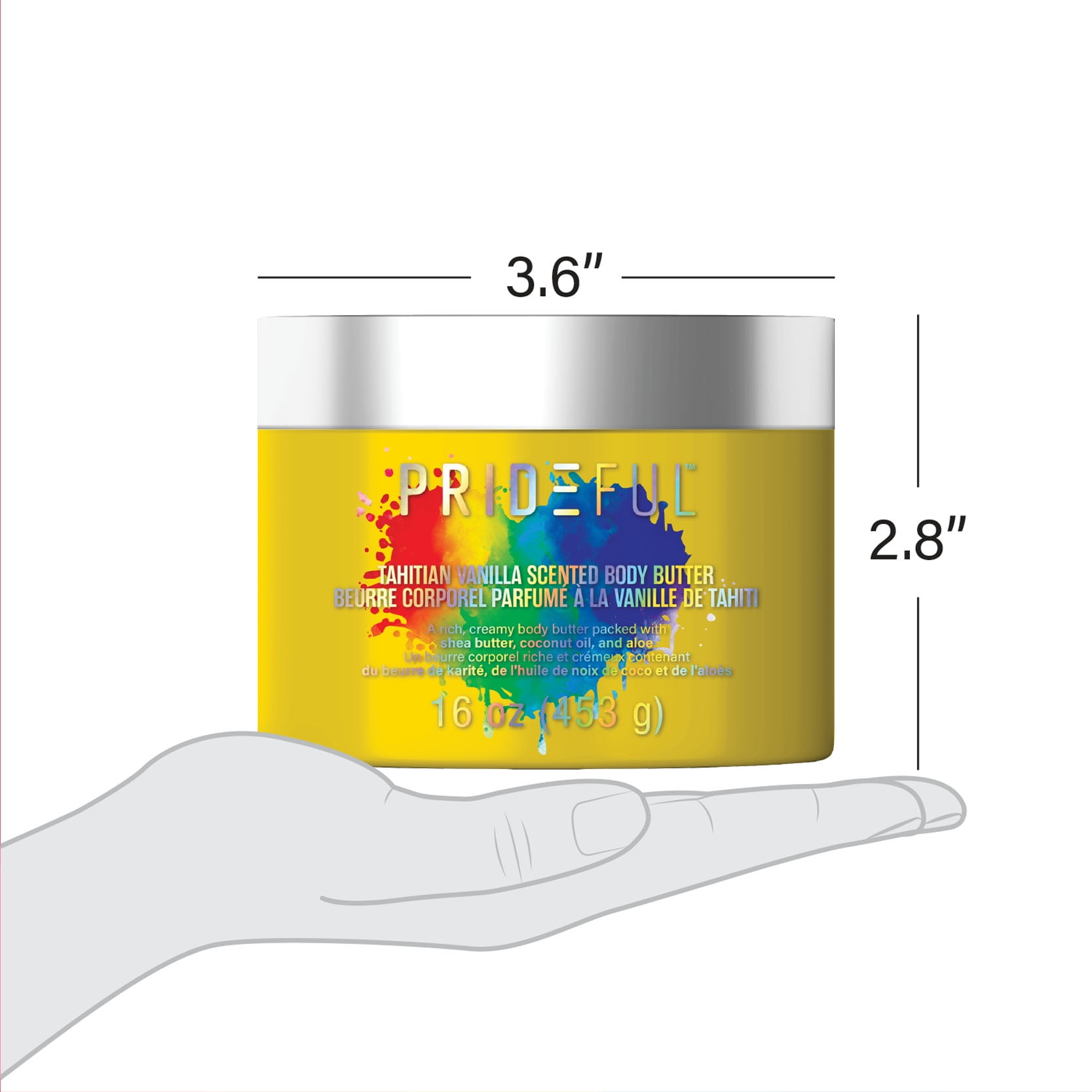 Prideful’s Tahitian Vanilla Yellow Body Butter is a rich creamy body butter packed with rich shea butter, coconut oil, and aloe. Love and nourish your skin like never before with your favorite Prideful Tahitian Vanilla Yellow Body Butter. Slather on our rich and creamy non-sticky, non-greasy moisturizer sparingly or generously. Self-Love should always feel this good.