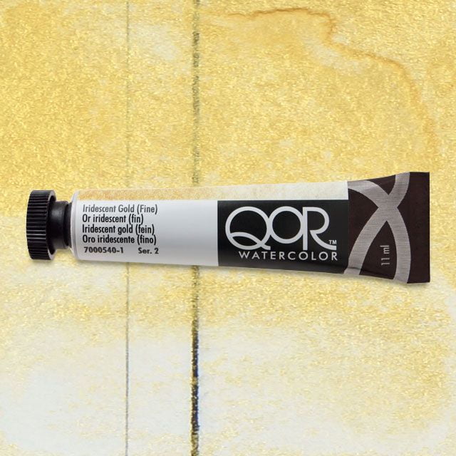 QoR watercolors are made with a water-soluble, archival binder that supports greater pigment loading than traditional watercolors, promotes pigment strength and depth of color, without sacrificing the best qualities found in traditional watercolors. This binder is incredibly flexible in comparison to many watercolor binders, and allows for smooth color transitions and vibrance even after the paint dries. Iridescent Gold (Fine), 11 ml tube.