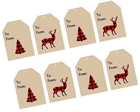 Red Lumberjack Deer Tree Christmas Holiday Gift Wrap / Gift Bag Tags 32pack