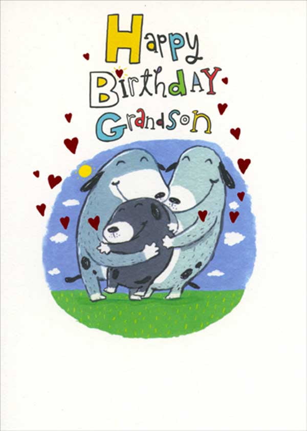 RSVP Hugging Dog Family Birthday Card for Young Grandson