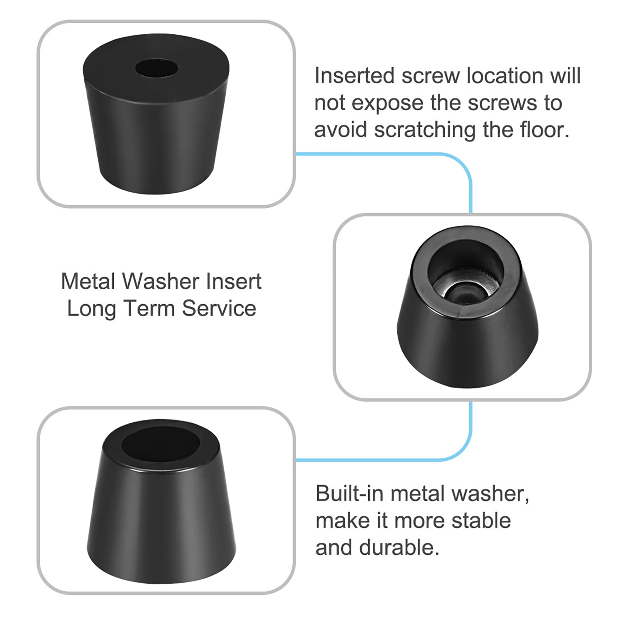 2.The tapered rubber feet have a through-hole and a recess for mounting with screws(screws not included).