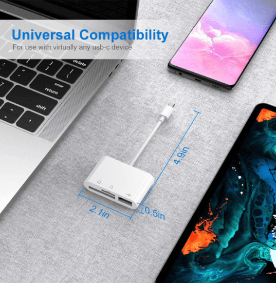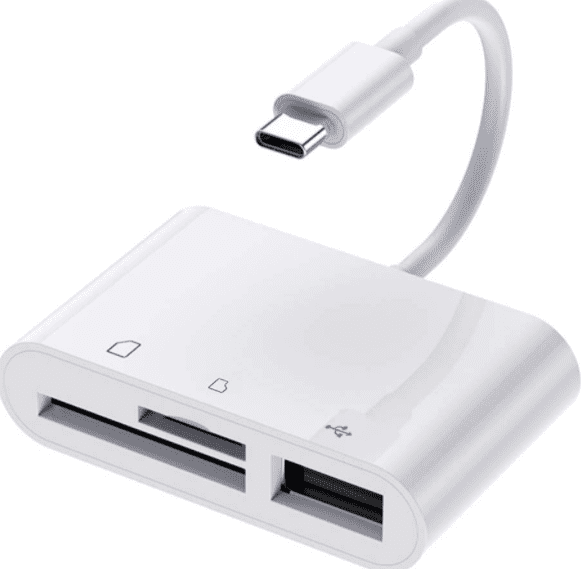 - 3-in-1 USB C to Micro SD / SD / TF Card Reader Adapter.