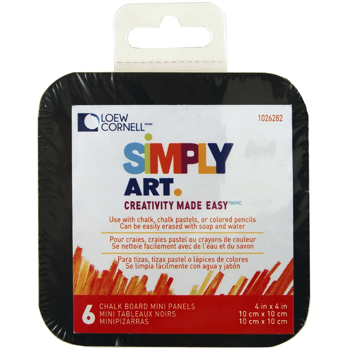 Loew Cornell-Simply Art Mini Chalkboard Panels. The perfect surface for putting down your own artwork! Use with chalk, chalk pastels or colored pencils! Can be easily erased with soap and water. This package contains six 4×4 inch mini chalkboard panels. Imported.Simply Art Wood Chalkboard Panels 4"X4" 6/Pkg