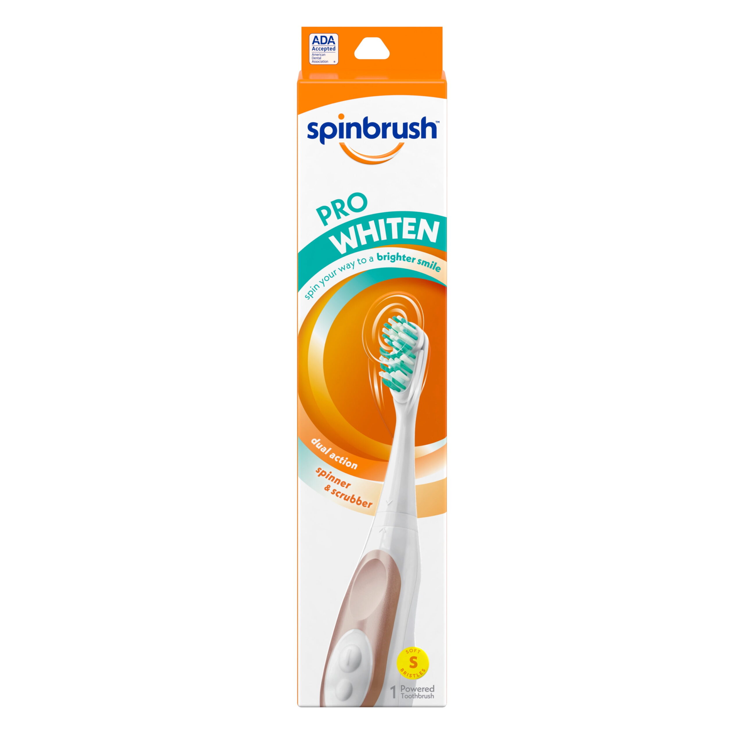 Spinbrush PRO WHITEN Battery Powered Toothbrush, Soft Bristles, 1 Count, Rose Gold or Silver Color May Vary
