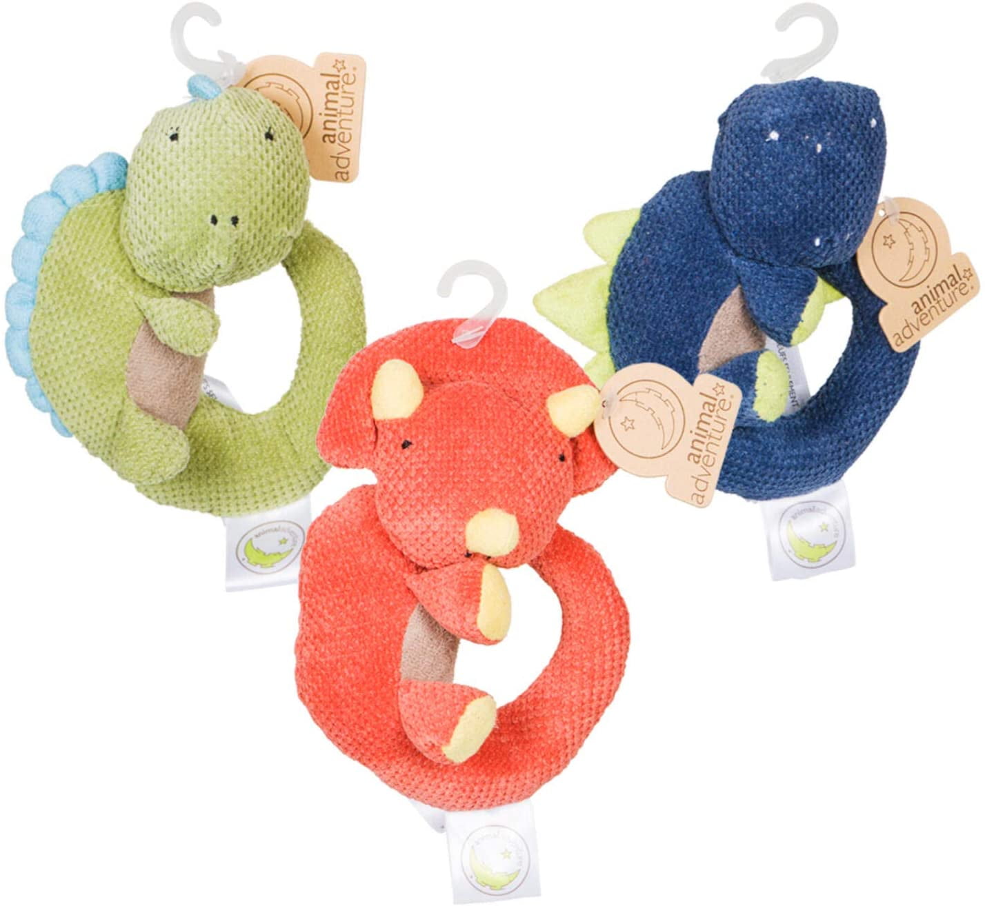 Little Dinos baby rattles are a fun and super soft toy for babies. These rattles are comfortable for them to hold amd made of 100% polyester material. 3 dinosaur rattles per order.