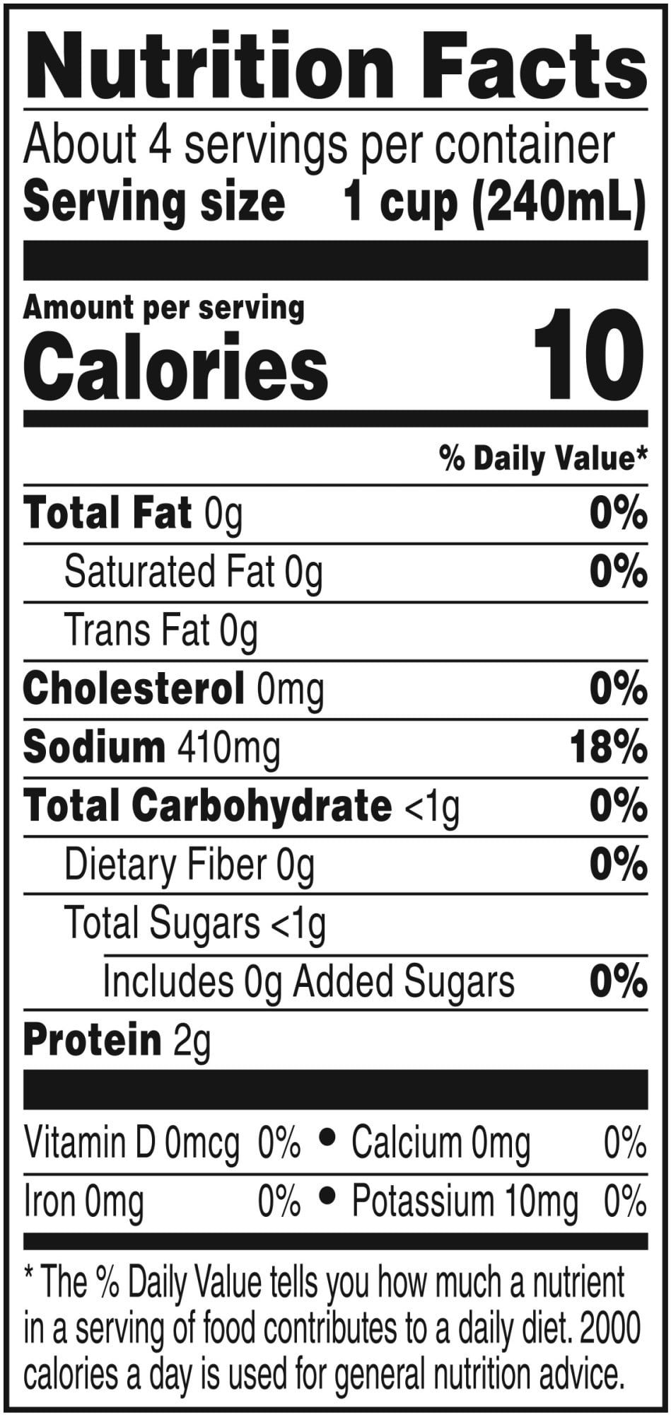 - 50% LESS SODIUM THAN OUR REGULAR BEEF BROTH*: Natural flavors shine through from reduced salt, giving you more culinary control in seasoning your dishes . *[50% LESS SODIUM THAN OUR REGULAR PRODUCT. THIS PRODUCT CONTAINS 410 MG SODIUM PER SERVING VERSUS 830 MG FOR OUR COMPARABLE BEEF BROTH]