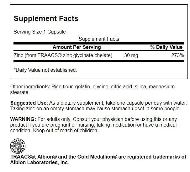 Swanson Albion Zinc 30 mg 90 Caps
